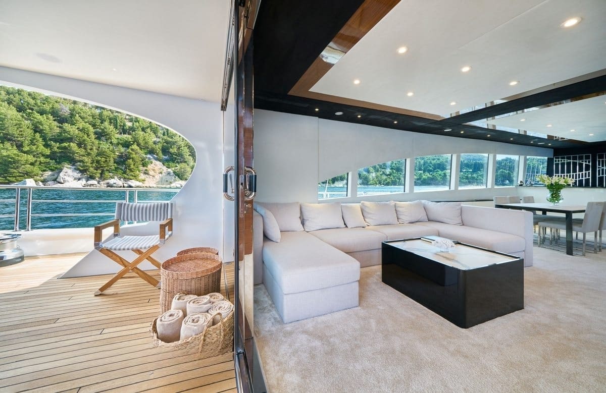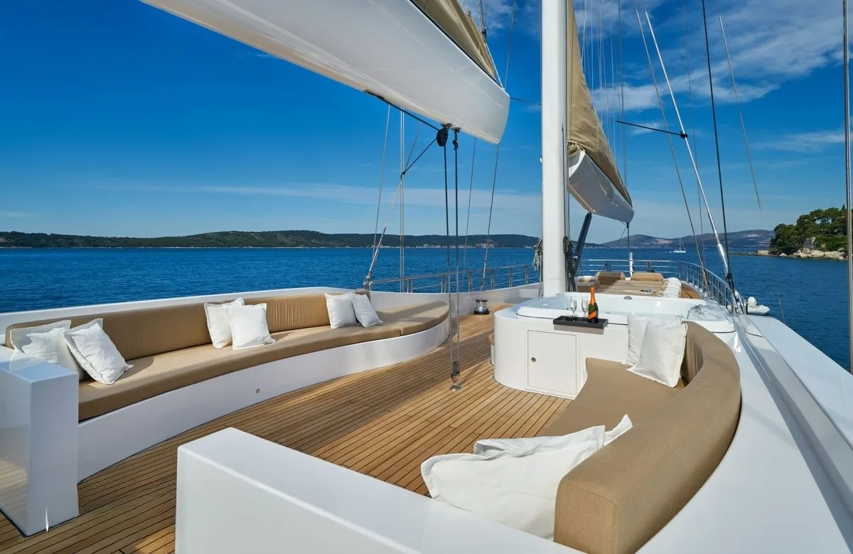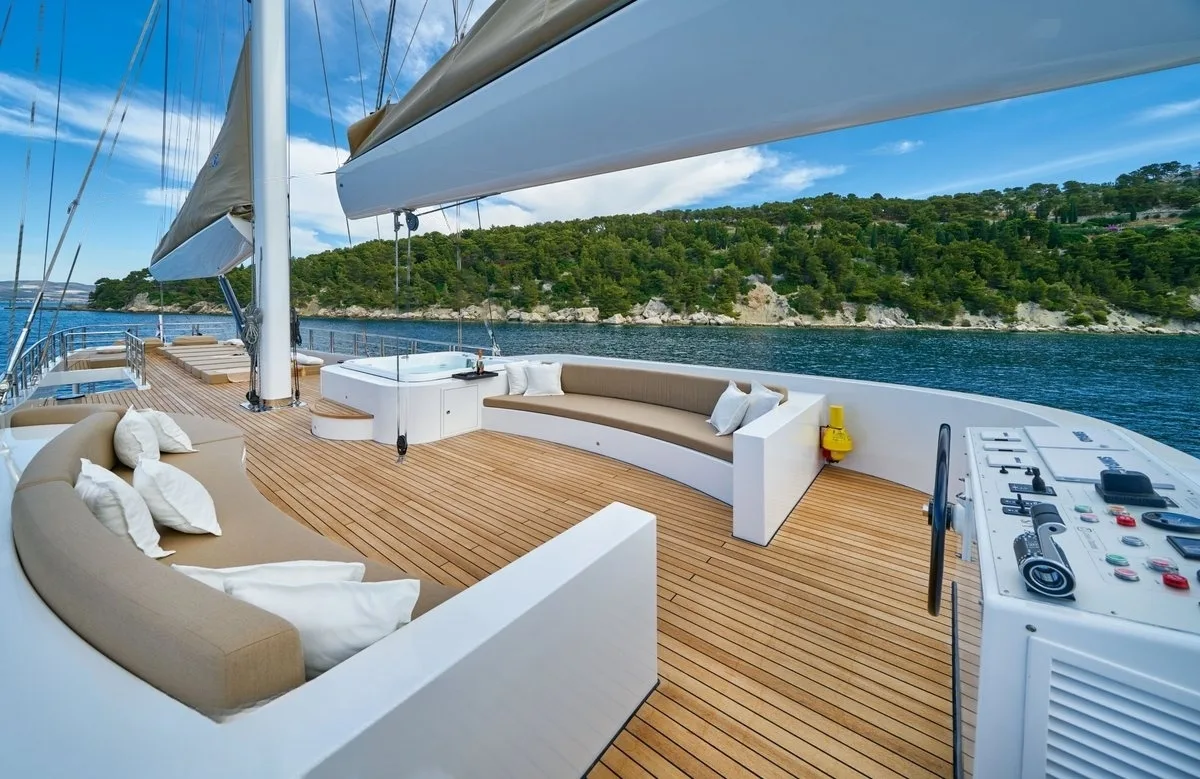 On board Acapella, every moment is an occasion. Her inviting spaces are designed for both relaxation and celebration, featuring a deck jacuzzi that becomes the perfect spot for unwinding under the stars. The yacht is equipped with Wi-Fi to keep you connected, while air-conditioned interiors offer a cool retreat after sun-soaked adventures. With seamless indoor-outdoor living, you can savor gourmet meals on the expansive deck, where the gentle sea breeze enhances every bite.
