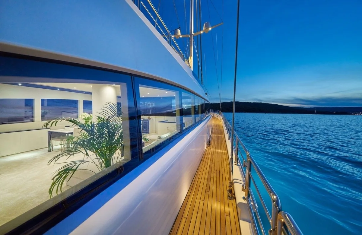 Embark on a journey like no other aboard Acapella, a striking 161-foot motor sailing yacht launched in 2021. Her sleek lines and custom design offer a unique blend of modern elegance and traditional craftsmanship, inviting you to explore the sun-drenched Mediterranean in unparalleled style. Whether gliding through the azure waves of the Adriatic or anchoring in the secluded bays of Greece, Acapella promises an unforgettable voyage where every day is crafted to your desires.