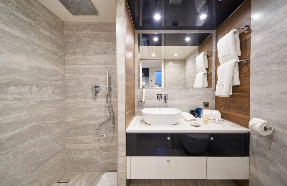 Acapella welcomes up to 12 guests into five exquisitely appointed cabins, ensuring that each guest has a personal sanctuary. The master suite and two VIP cabins feature king-sized beds, offering a sumptuous escape where mornings begin with breathtaking ocean views. Two additional double cabins, along with Pullman beds, accommodate your entire party with ease. The attentive crew of nine is dedicated to delivering a seamless experience, ensuring every detail is attended to with precision and care.