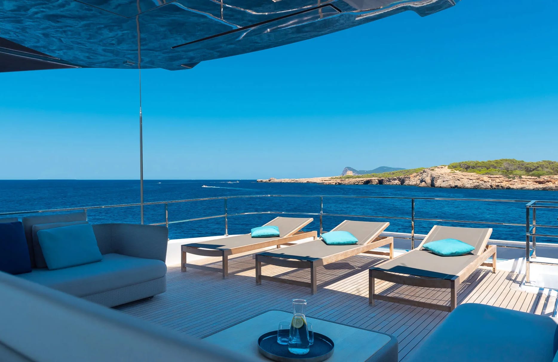 Acqua welcomes up to 11 guests into her thoughtfully designed accommodations, where each of the five cabins offers a sanctuary of rest and rejuvenation. The full beam primary suite provides a tranquil retreat with expansive views, while the additional double and twin cabins ensure every guest enjoys a restful night’s sleep. As dawn breaks, the gentle motion of the sea and the promise of a new day invite you to embrace the possibilities aboard.