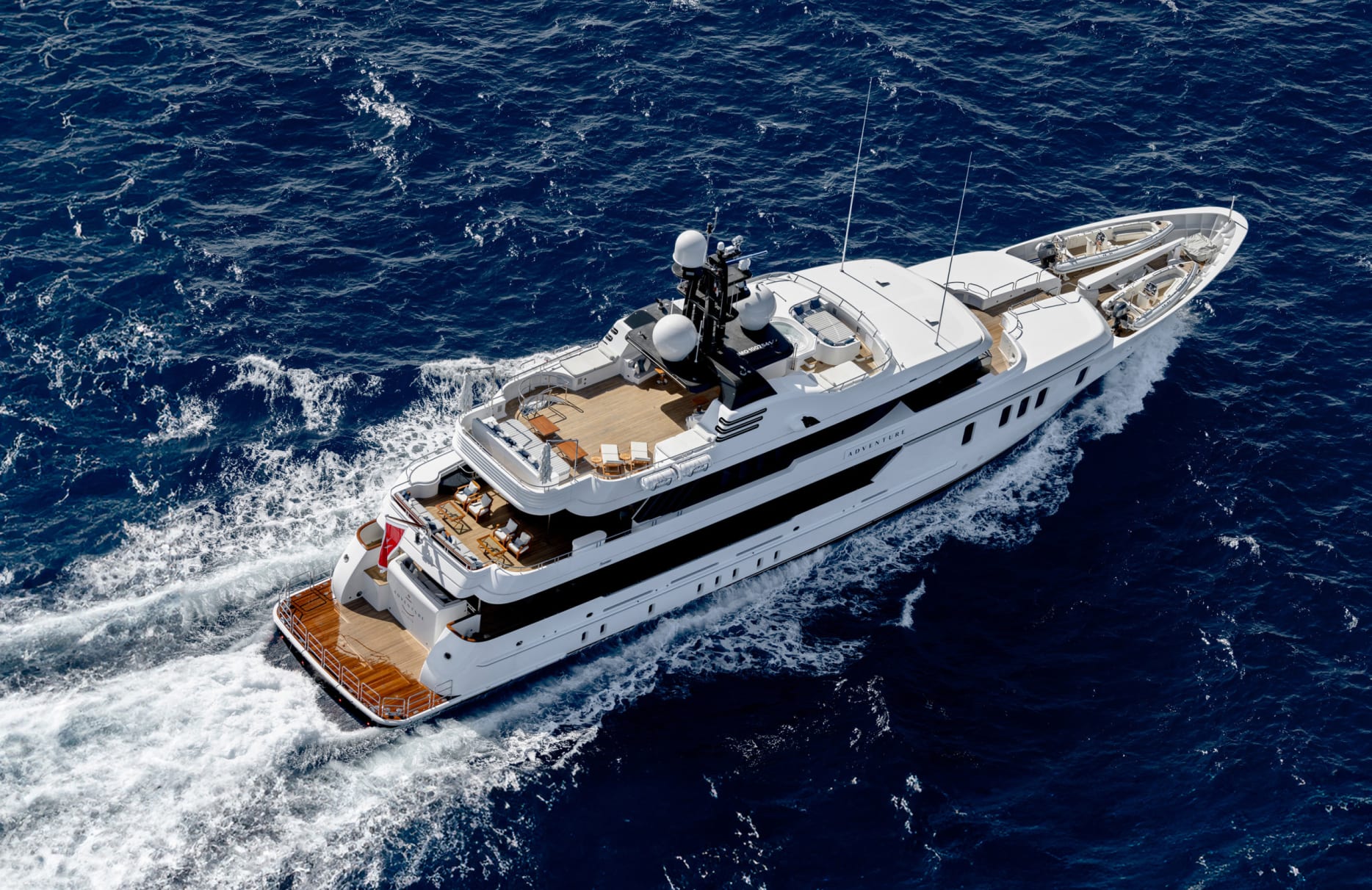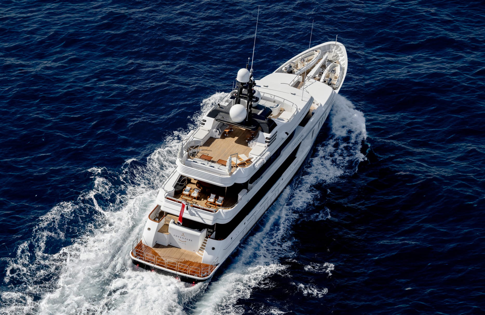 Aboard ‘Adventure,’ each day unfurls with the promise of relaxation and delight. Begin your morning with a refreshing dip from the swimming platform or enjoy a tranquil yoga session on the sun deck. As the day unfolds, the beckoning deck jacuzzi offers a serene backdrop for afternoon lounging, while the exterior bar serves as a convivial gathering spot for evening cocktails under a starlit sky. With state-of-the-art Wi-Fi and a rich selection of video on-demand, guests can remain connected and entertained throughout their voyage. The expansive beach club invites leisurely afternoons, while the fully equipped gym ensures fitness enthusiasts can maintain their routine surrounded by panoramic ocean views.