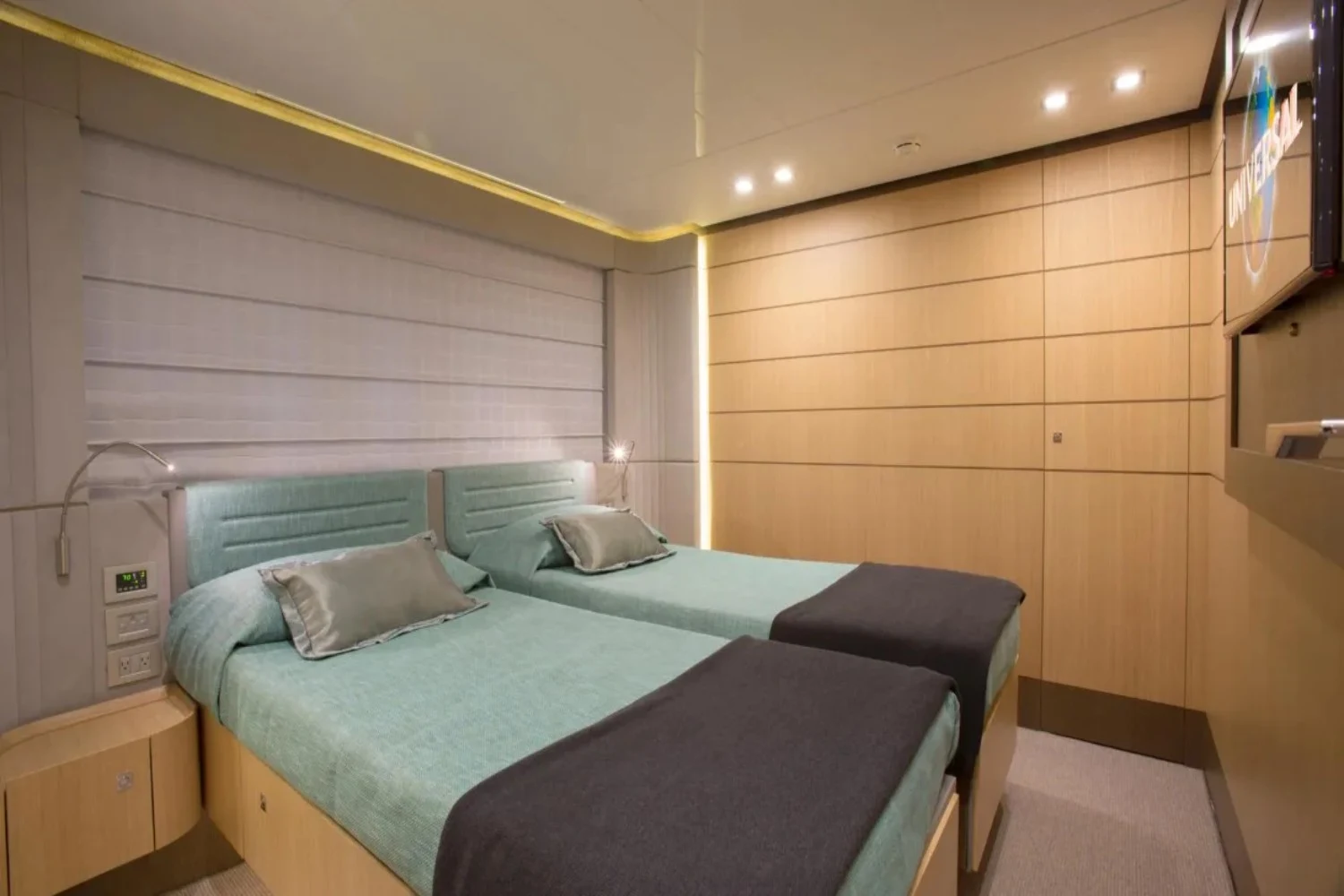 Alandrea offers an exquisite onboard experience, blending serenity with sophistication. The beach club, right at the water’s edge, is perfect for leisurely days and social evenings. Indulge in moments of relaxation in the jacuzzi, or maintain your fitness routine in the state-of-the-art gym. With Wi-Fi connectivity and air conditioning throughout, comfort is guaranteed in all climates. Whether you’re enjoying a quiet afternoon or a lively gathering with friends, Alandrea’s spaces cater to every mood and occasion.