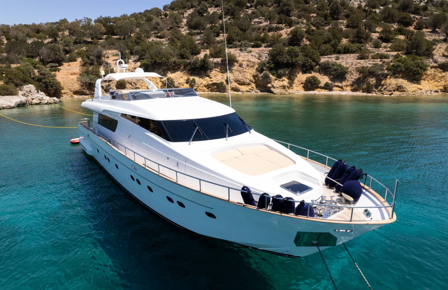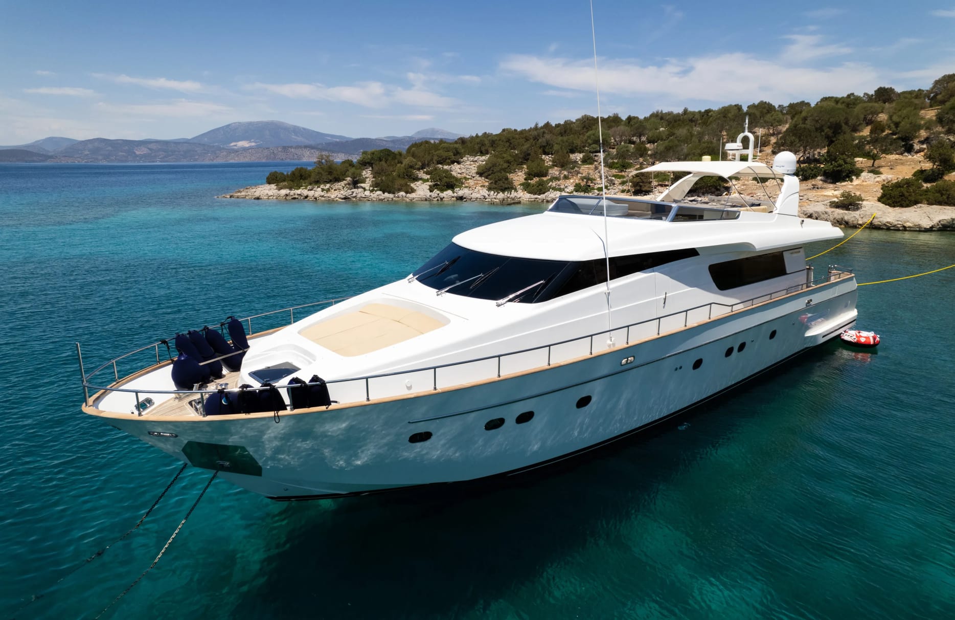Introducing Alegria, a 25-meter motor yacht crafted by the esteemed Italian shipyard Sanlorenzo. This stunning vessel invites you to a world where elegance meets adventure, offering a haven of tranquility as you glide across the Mediterranean’s azure waters. Built in 2007 with a recent refit in 2022, Alegria combines a robust GRP hull with a sleek superstructure, allowing her to elegantly reach speeds of up to 30 knots. As you journey aboard Alegria, the allure of secluded coves and vibrant harbors offers endless opportunities for exploration both on and off the yacht. This experience is designed for those who seek to embrace the Mediterranean lifestyle, indulging in the region’s timeless charm and breathtaking vistas.