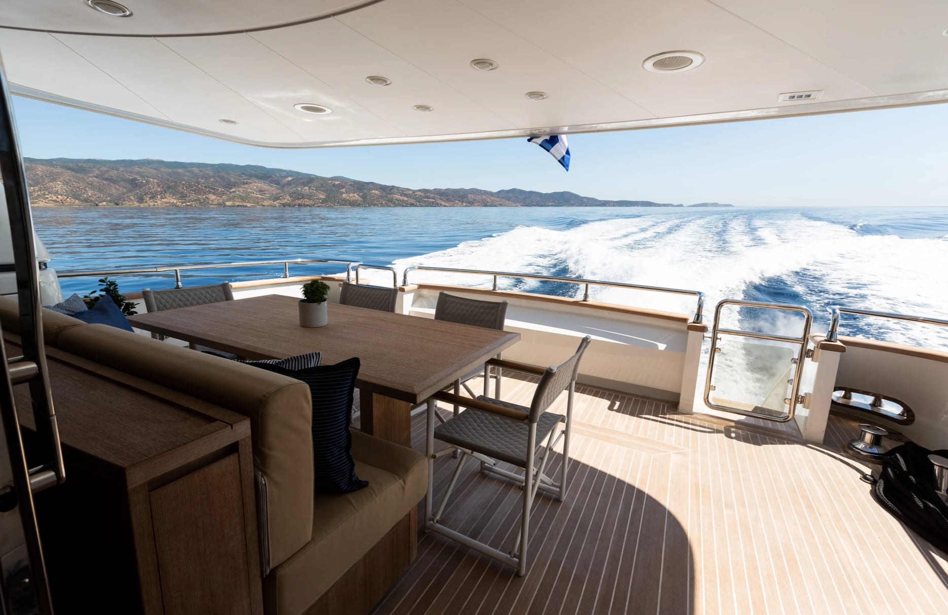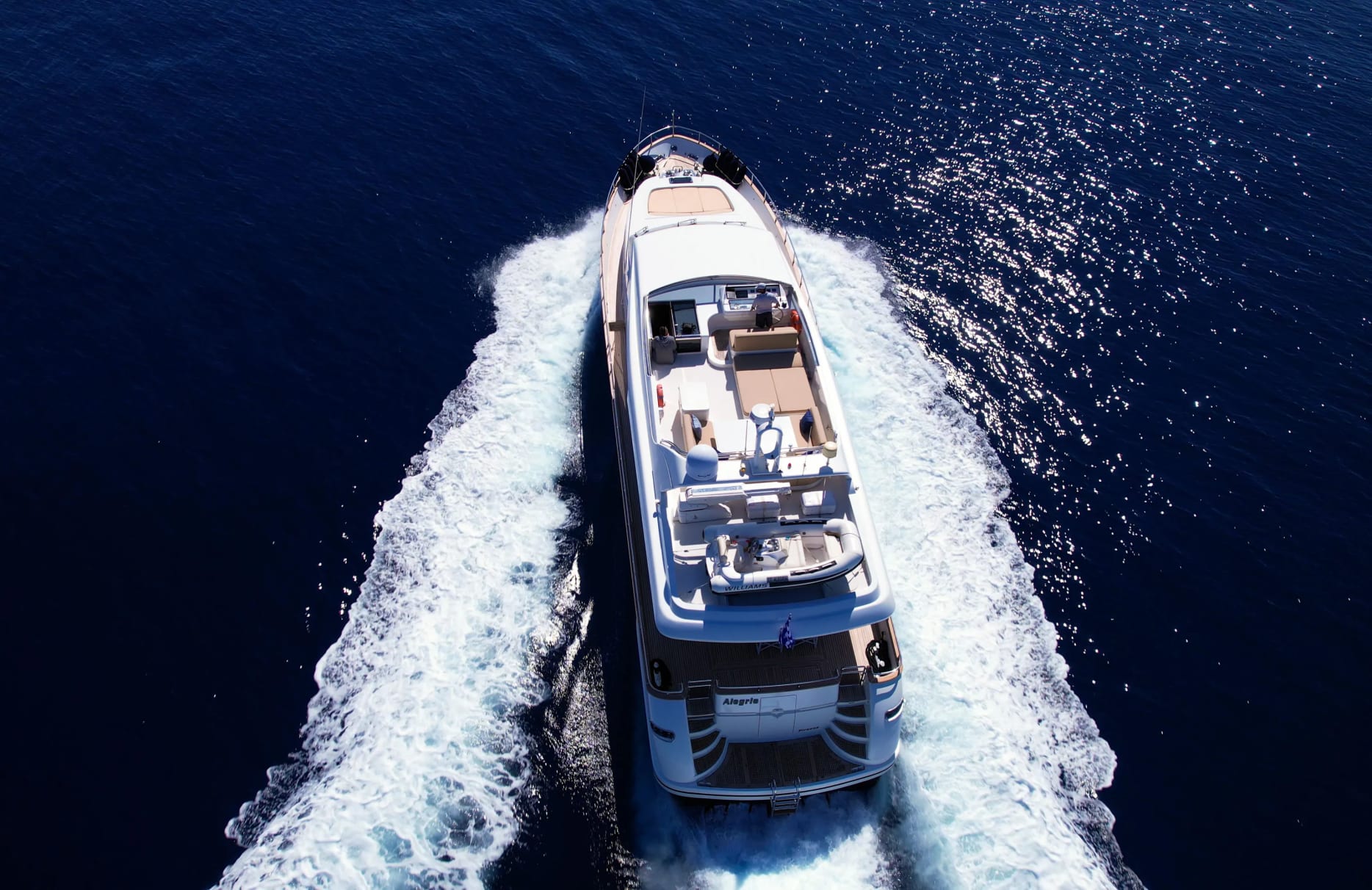 Onboard Alegria, each moment is crafted for your delight. As day turns to night, the underwater lights cast a mesmerizing glow, enhancing the yacht’s elegant design. Aboard, the sunpads beckon for leisurely afternoons, while the swimming platform invites invigorating dips into the sea. Stay connected with Wi-Fi as you relax in the comfort of air-conditioned spaces, or enjoy alfresco dining with the BBQ on deck. Whether you are unwinding with a book or socializing with friends, every detail is tailored to elevate your experience.