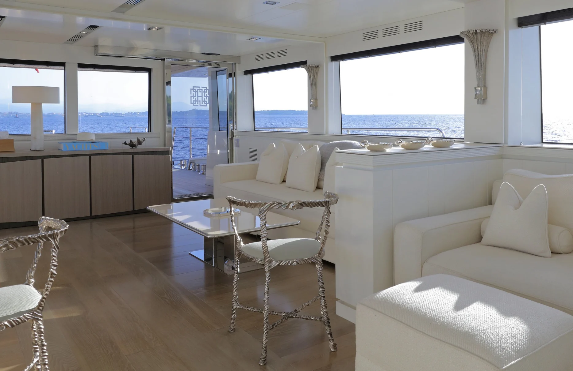 The inviting spaces aboard Alexandra are designed for both indulgence and entertainment. Picture yourself basking in the sun on the spacious foredeck seating area, perhaps with a refreshing cocktail from the exterior bar. As the day transitions to evening, gather with friends around the sun deck to enjoy breathtaking sunsets, while the at-anchor stabilizers ensure a smooth experience. With seamless Wi-Fi connectivity and meticulously controlled air conditioning, each moment aboard feels perfectly curated.