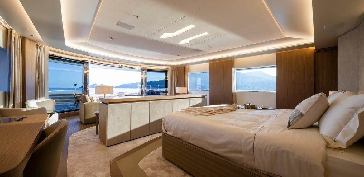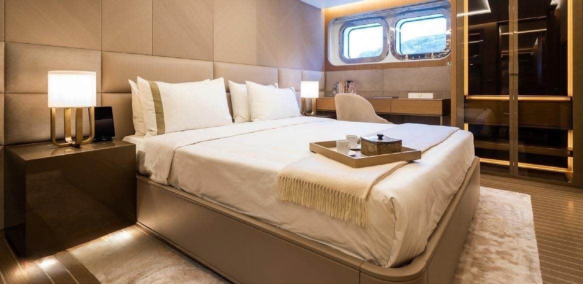 Alfa’s accommodations are a testament to refined elegance, providing sanctuary to up to 12 guests across seven beautifully appointed cabins. Each room is a haven of comfort, from the full-beam master suite with its own study and dressing room to the inviting double and twin cabins that promise restful nights at sea. Waking up aboard Alfa means being greeted by the gentle sway of the ocean and the soft glow of the morning sun, setting the tone for another day of extraordinary experiences.