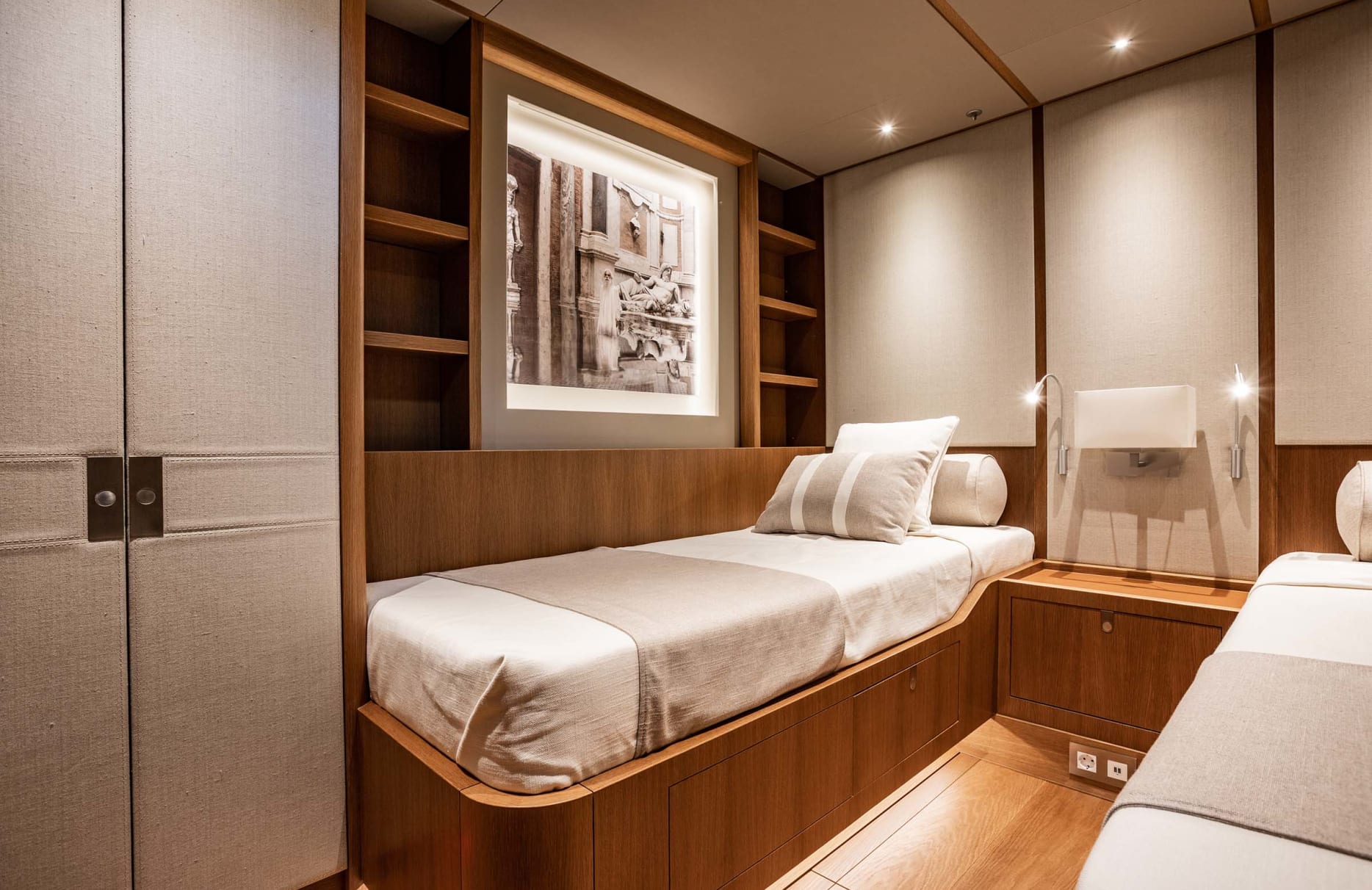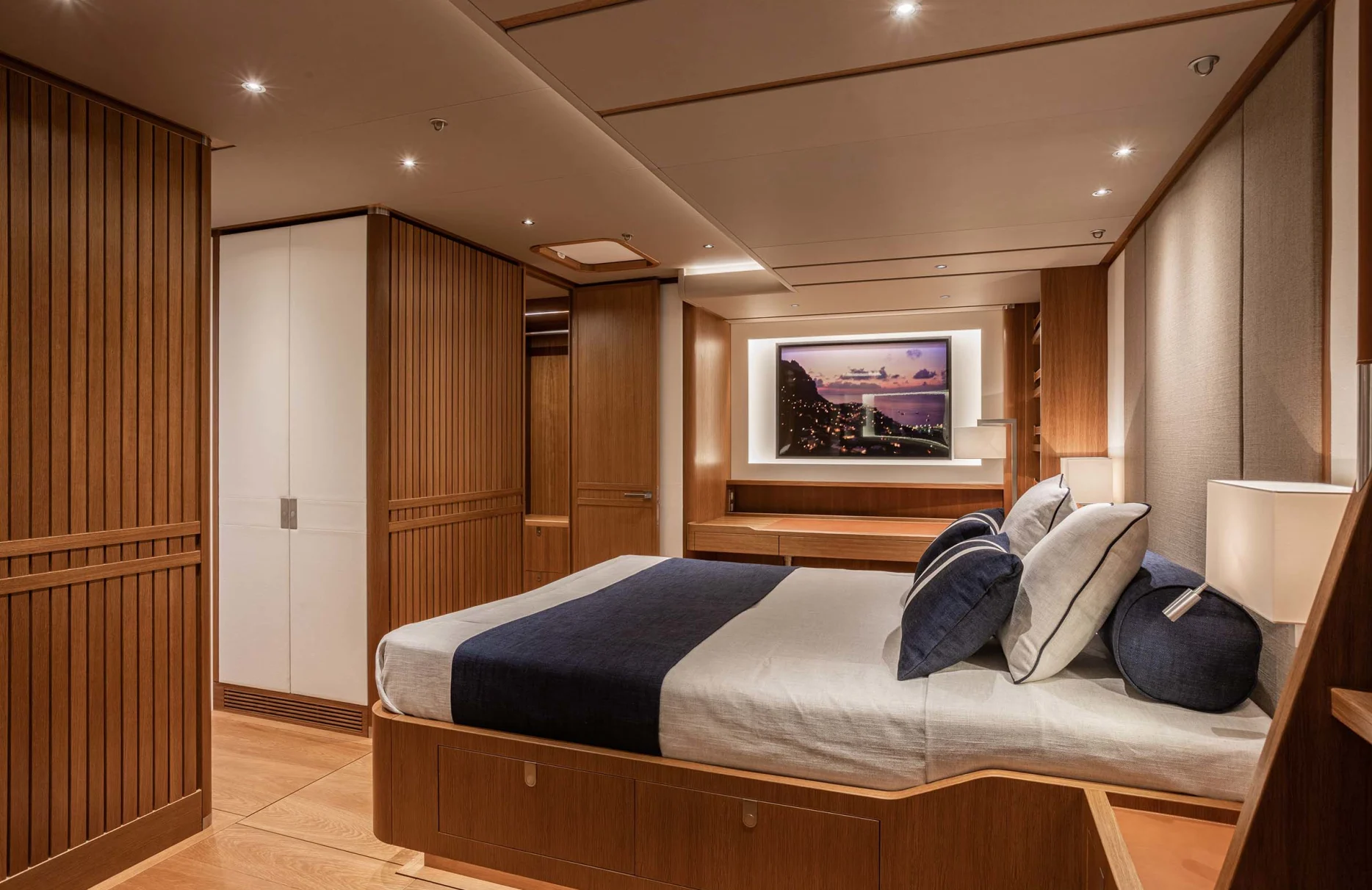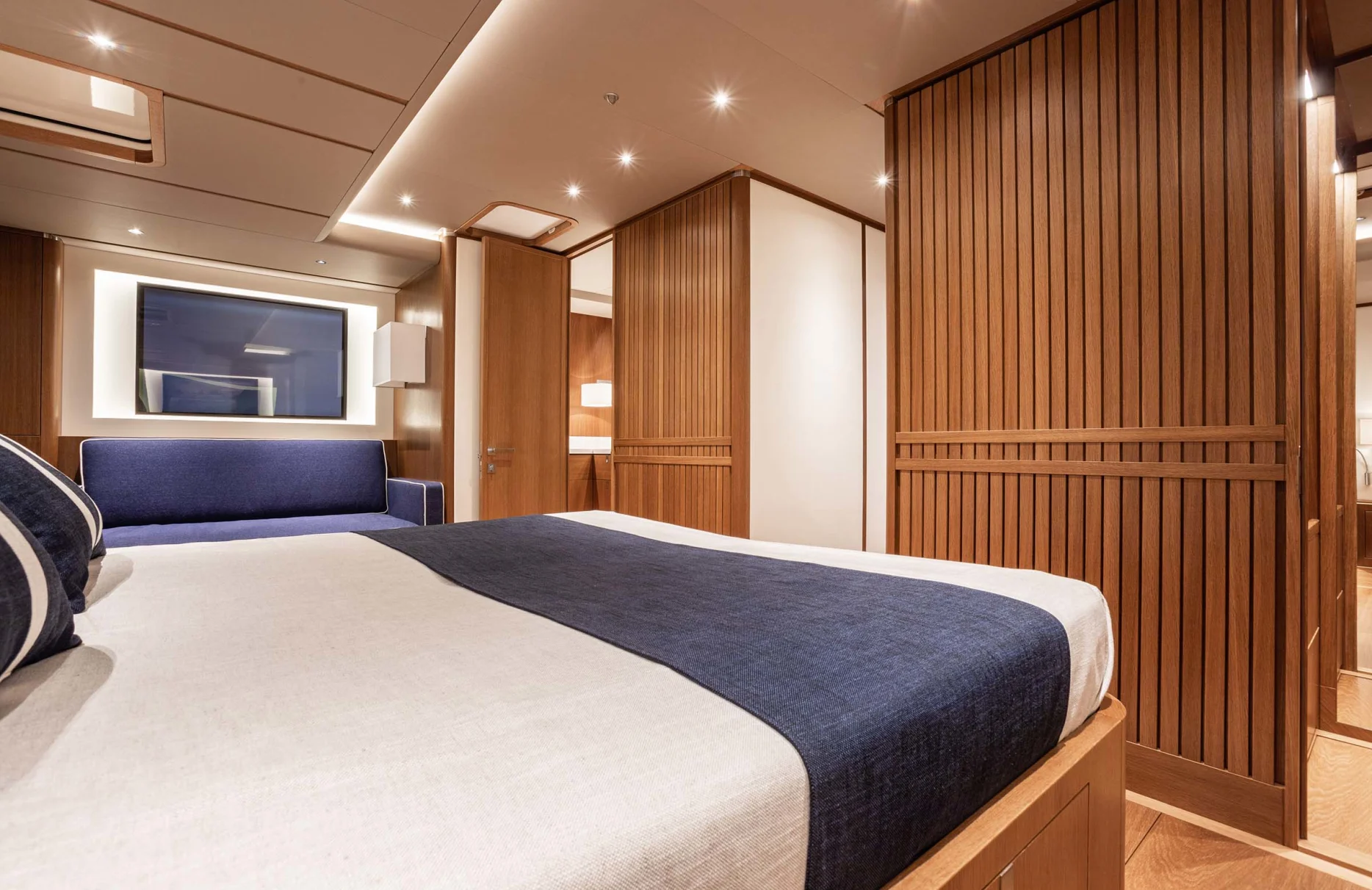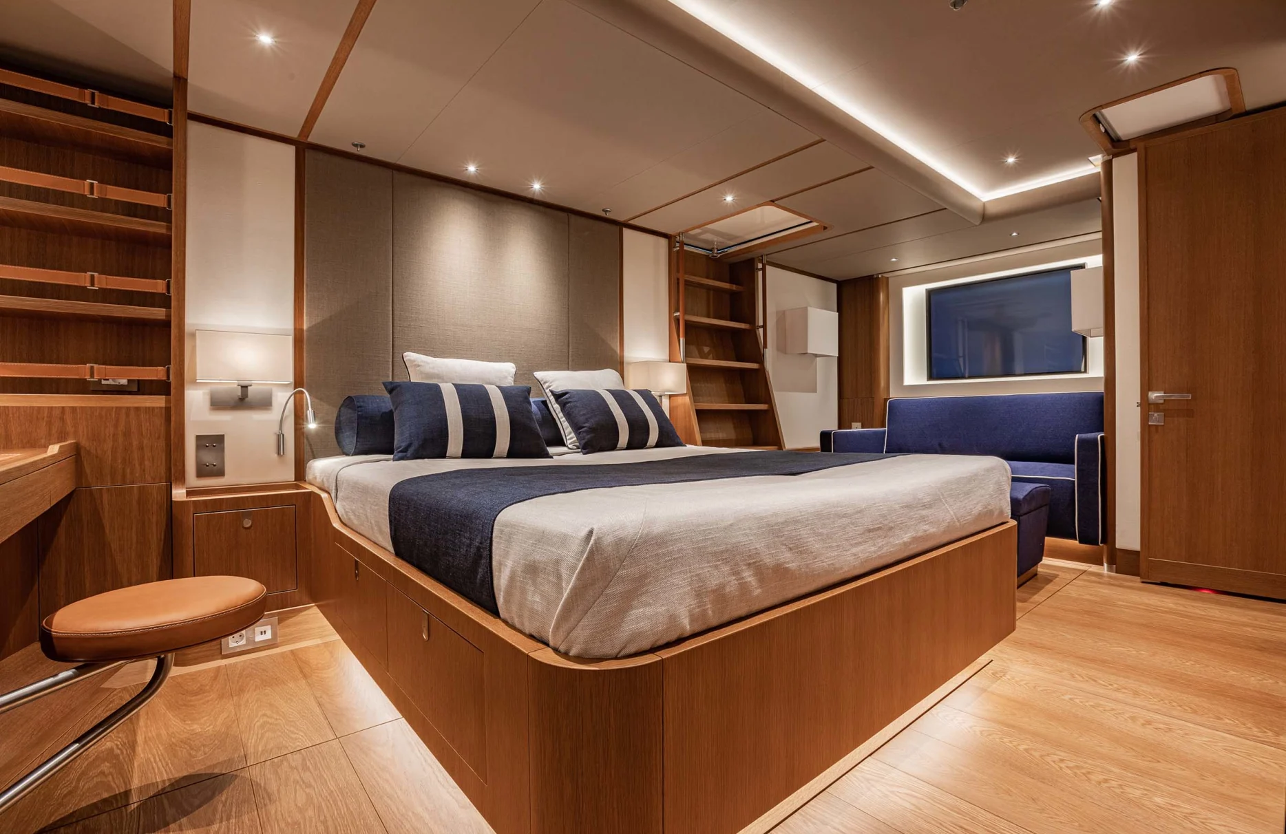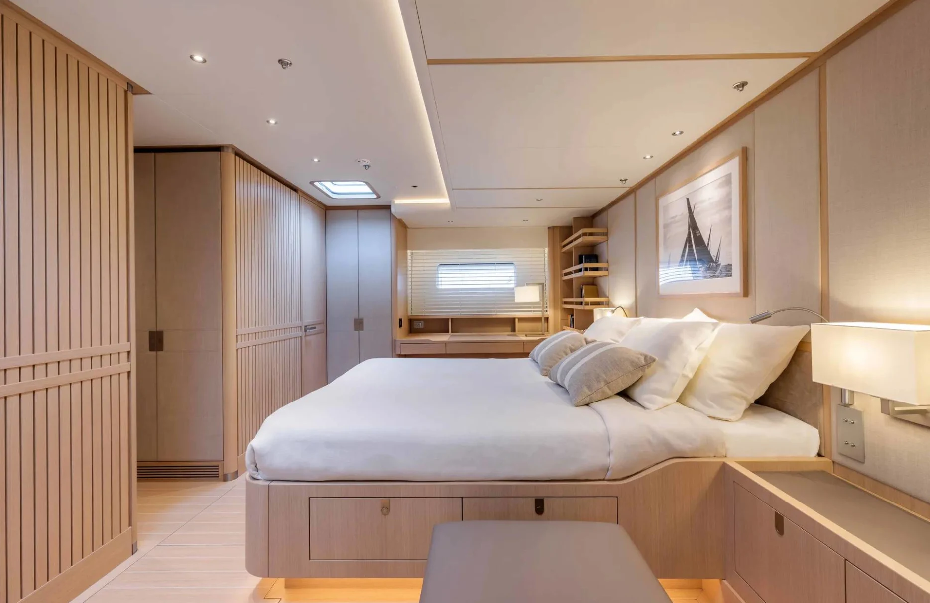 Alix welcomes up to eight guests into its embrace, offering four lavishly appointed cabins where comfort and style harmoniously coexist. Awaken to the gentle lull of the sea in your private sanctuary, where every detail has been considered to enhance your stay. The elegant suites, with their exquisite interiors, provide a serene retreat, allowing you to rejuvenate and refresh before embarking on the day’s adventures. With two additional staff cabins and a dedicated crew of four, your comfort and privacy are always prioritized.