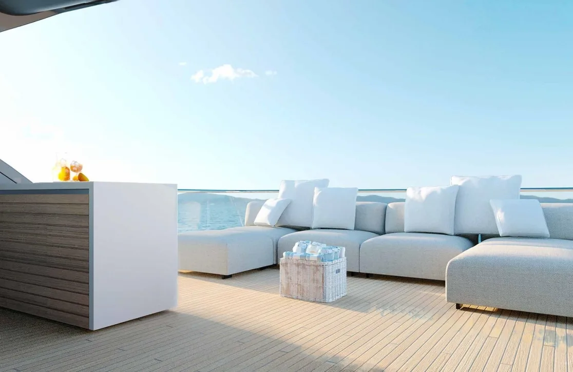 Step into a world where every detail is designed for comfort and enjoyment. The sun deck invites you to bask under the sun, while the beach club offers a seamless connection to the ocean. As day turns to night, gather around the exterior bar for sunset cocktails, with the gentle sea breeze as your companion. Stay connected with Wi-Fi throughout the yacht, and maintain your fitness routine with well-appointed gym equipment. The fully air-conditioned interiors provide a cool retreat, ensuring that your voyage is as comfortable as it is memorable.
