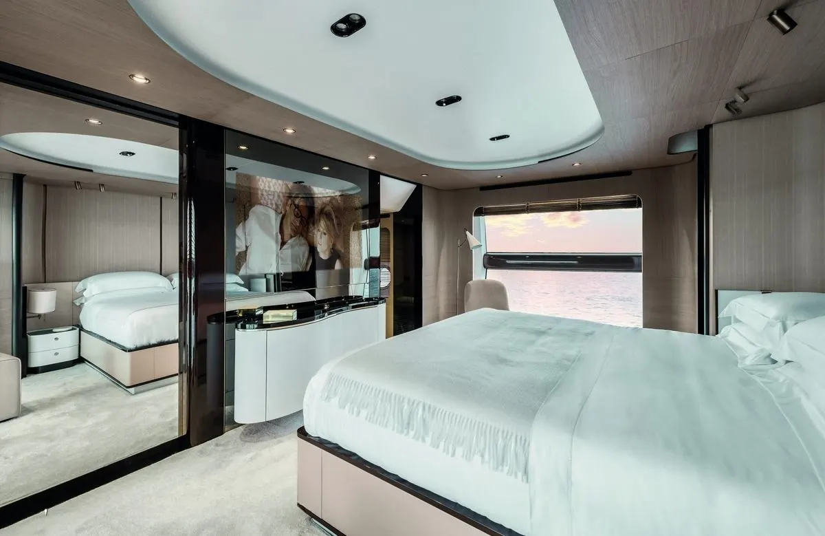 The Aluminia Too invites you to an unforgettable journey across azure seas. Crafted by the esteemed Azimut shipyard and graced with the artistry of Achille Salvagni’s interiors, this 27-meter vessel is a masterpiece of modern design and engineering. Built in 2024, she offers an unparalleled opportunity to explore the world’s most stunning coastlines in unparalleled comfort and style. With a graceful carbon fiber superstructure and twin MAN engines, she cruises effortlessly at 22 knots, allowing you to swiftly transition from one magnificent destination to the next while indulging in the splendor of the open sea.