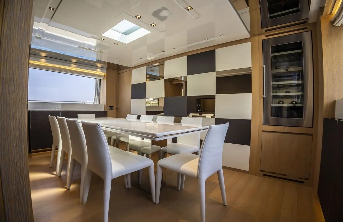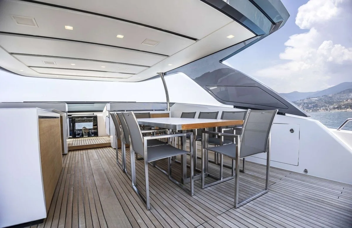 Aman’s decks are a symphony of spaces designed to enhance your time at sea. The outdoor cinema invites you to enjoy a starlit movie night, while the sun deck provides the perfect backdrop for soaking in the Mediterranean sun. Culinary delights await as you indulge in alfresco dining, with a barbecue sizzling and a drink crafted at the exterior bar. For those seeking a blend of leisure and excitement, the hydraulic swim platform offers effortless access to the sea, while the tender garage ensures seamless transitions between your aquatic adventures and onboard tranquility.