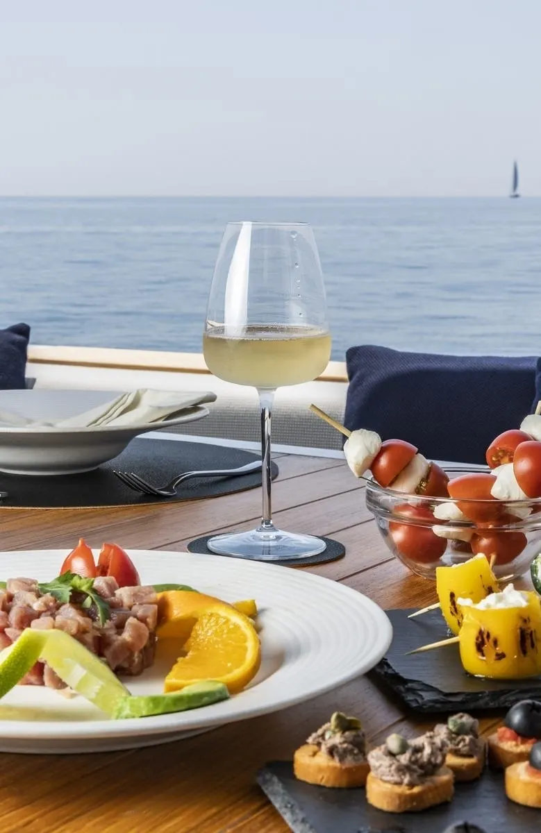 Accommodating up to ten guests in five thoughtfully designed suites, Aman ensures that each guest wakes up to the gentle lull of the Mediterranean waves. The subtle elegance of the cabins, enhanced by air conditioning and Wi-Fi connectivity, creates a sanctuary of comfort. Each room is a private oasis, inviting you to unwind and rejuvenate after a day of exploration. As sunlight filters through, the ambiance is one of serene luxury, making every morning a delightful awakening.