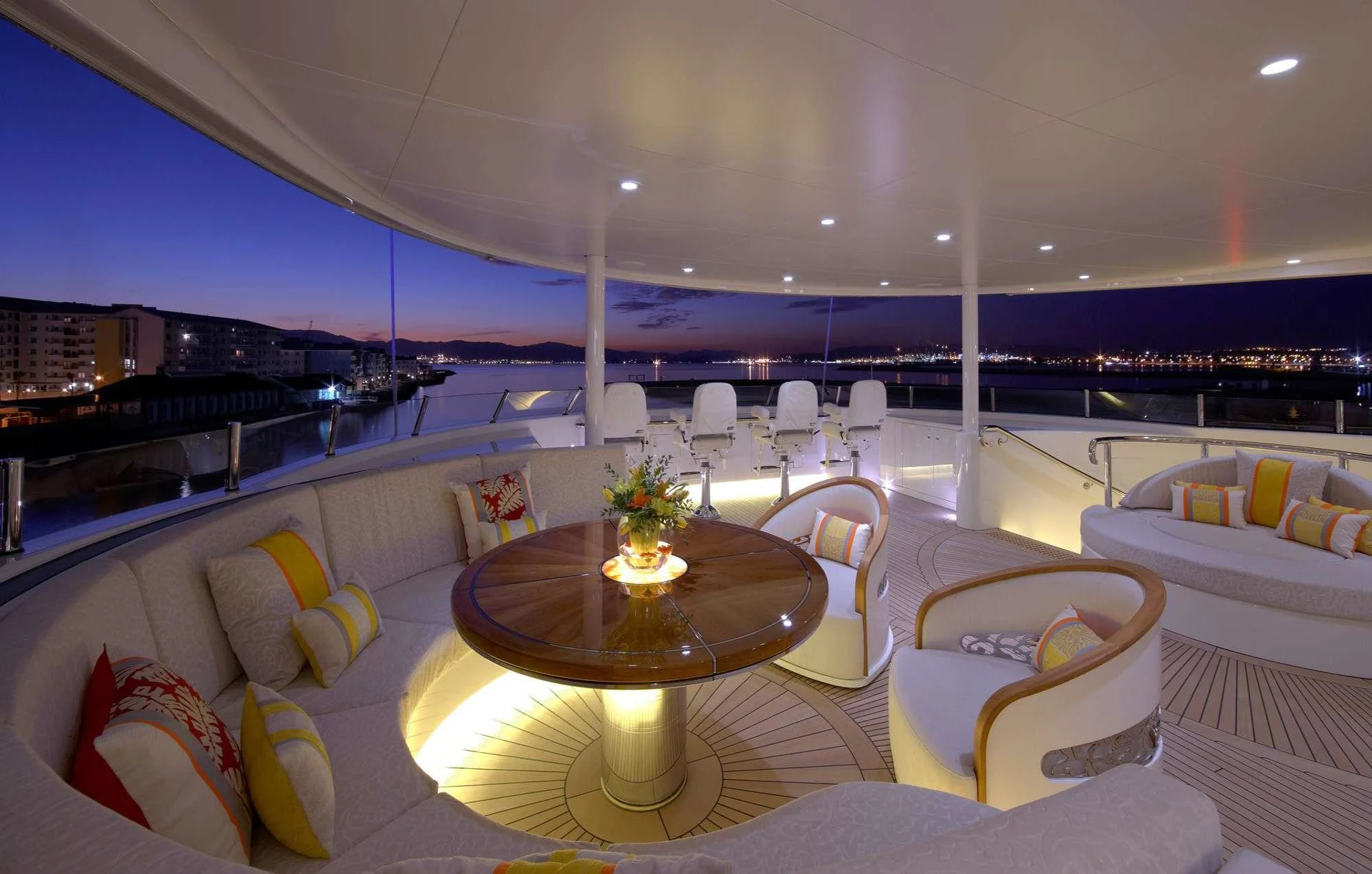Aboard Amaryllis, every moment is an invitation to indulge in the sublime. The main salon, adorned with custom sycamore wall panels, bathes guests in a warm glow, perfect for leisurely afternoons or lively evening gatherings. The yacht’s deck jacuzzi offers a tranquil retreat with breathtaking views, while the sauna and steam room promise rejuvenation after a day of exploration. For those seeking a more active pursuit, the gym offers state-of-the-art facilities, and the beach club is a gateway to the sea. As the sun sets, the piano lounge, with its self-playing Schimmel Pegasus, creates an enchanting backdrop for after-hours relaxation.