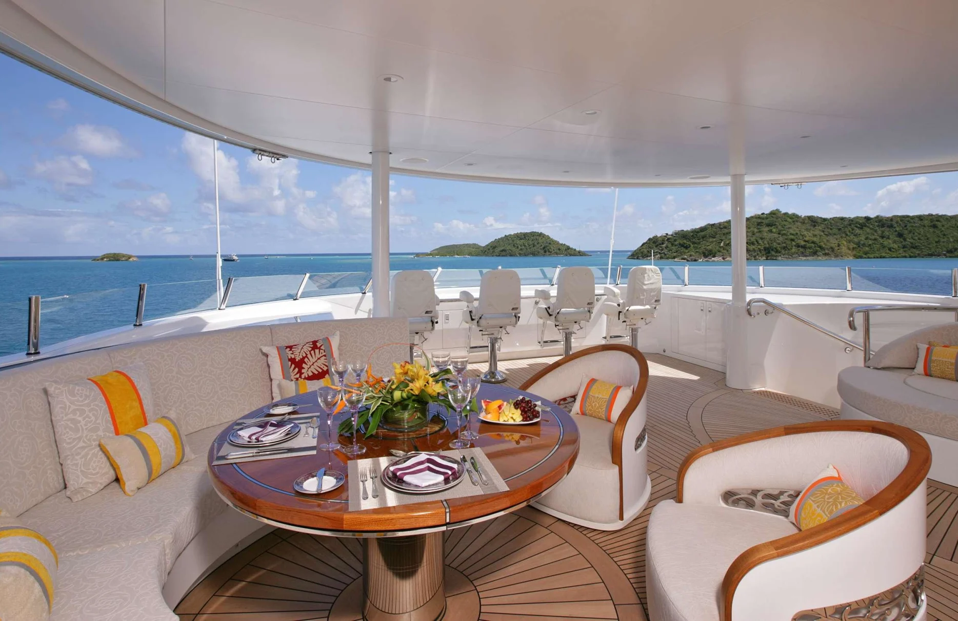 Amaryllis welcomes up to 12 guests into her embrace, offering six beautifully appointed staterooms. Each suite, thoughtfully designed with Art Nouveau and Art Deco influences, provides a serene haven where soft taupe shades and warm tones envelop you in comfort. The master suite, complete with a full-beam study crafted from rare English woods, is a secluded retreat for those who wish to blend work with leisure. As daylight filters through panoramic windows, gentle waves lull you into the perfect morning, setting the tone for another day of adventure.
