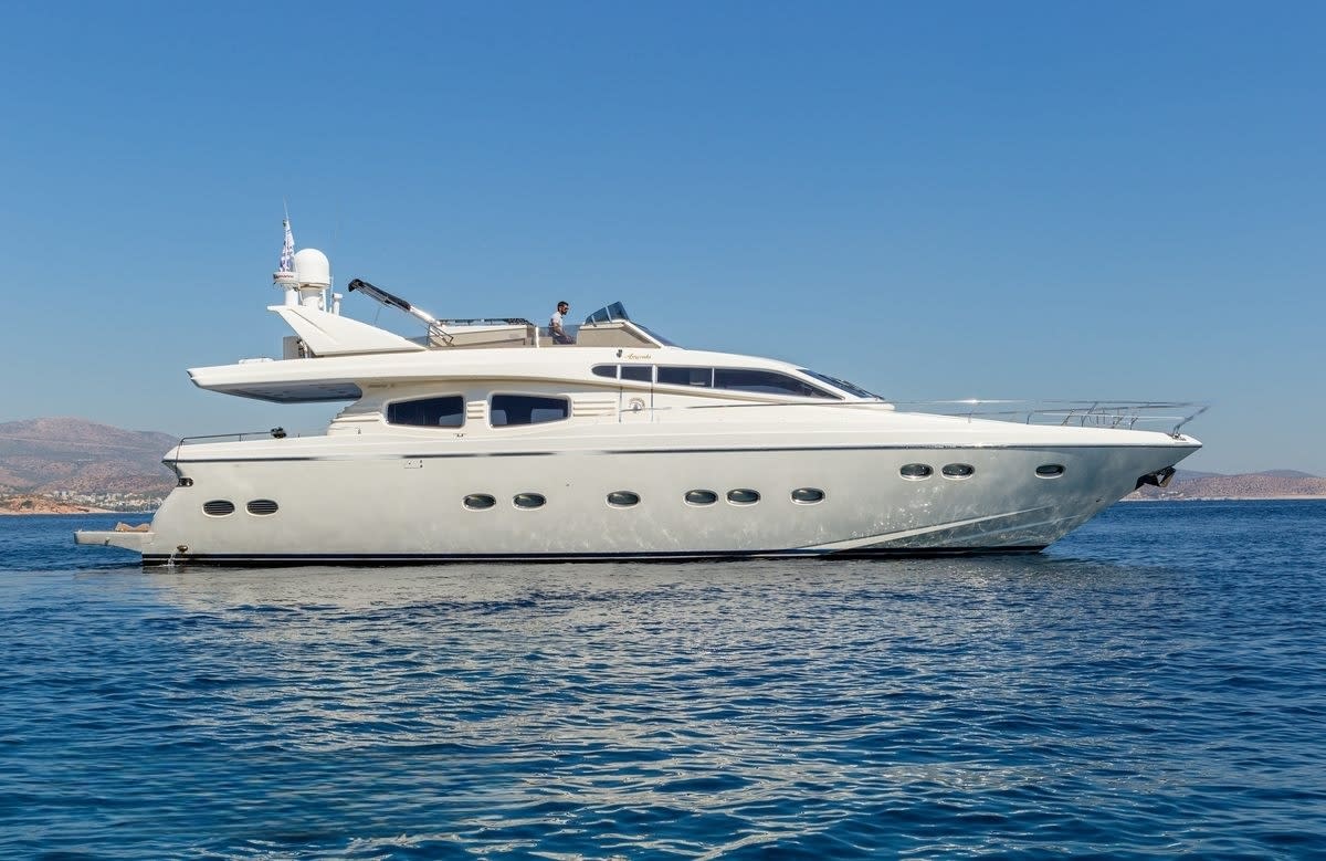 Imagine embarking on a journey across azure waters aboard the enchanting 23-meter motor yacht, Amoraki. Crafted by the renowned Posillipo shipyard, this exquisite vessel offers a haven for up to nine guests, promising unparalleled experiences both aboard and ashore. With a cruising speed of 20 knots and a range reaching up to 290 nautical miles, Amoraki effortlessly transports you to the heart of the Mediterranean’s most captivating locales. As you navigate the waves, the dedicated crew of four ensures that your time aboard is nothing short of extraordinary, blending seamless service with the freedom of the open sea.