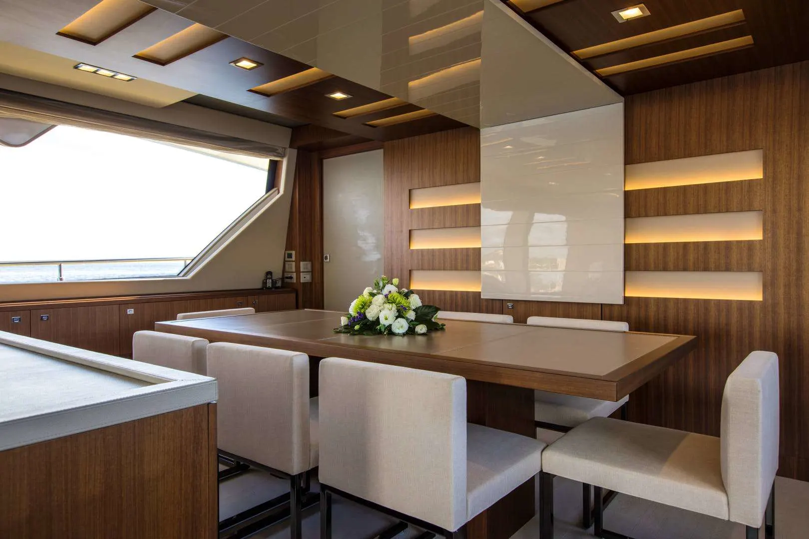 Aboard Amore Mio, the art of leisure takes center stage. As the sun sets, the underwater lights transform the evening into a tranquil spectacle, inviting contemplation and serenity. Spend your days indulging in the outdoor cinema under the open sky or unwind in the jacuzzi, letting the gentle sea breeze melt away any lingering stress. The foredeck, with its inviting seating and table, becomes a retreat for intimate conversations or lively gatherings, while the sunpads beckon you to relax and bask in the sun’s warmth.