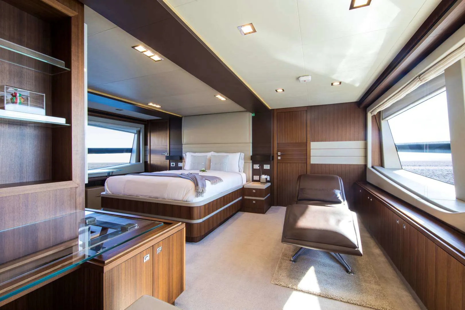 Set sail aboard Amore Mio, a 31-meter vessel designed by the illustrious Custom Line and styled by Zuccon. This exquisite motor yacht invites you to a world where elegance and comfort merge seamlessly, offering an unforgettable maritime journey. Picture yourself cruising at a brisk 20 knots, with the ability to surge forward to a thrilling 27 knots, guided by her sleek planing hull and twin MTU engines. With a range of 455 nautical miles, Amore Mio opens up a realm of exploration, where each day presents new coastal horizons to discover, blending the serenity of life at sea with the allure of hidden coves and vibrant harbors.