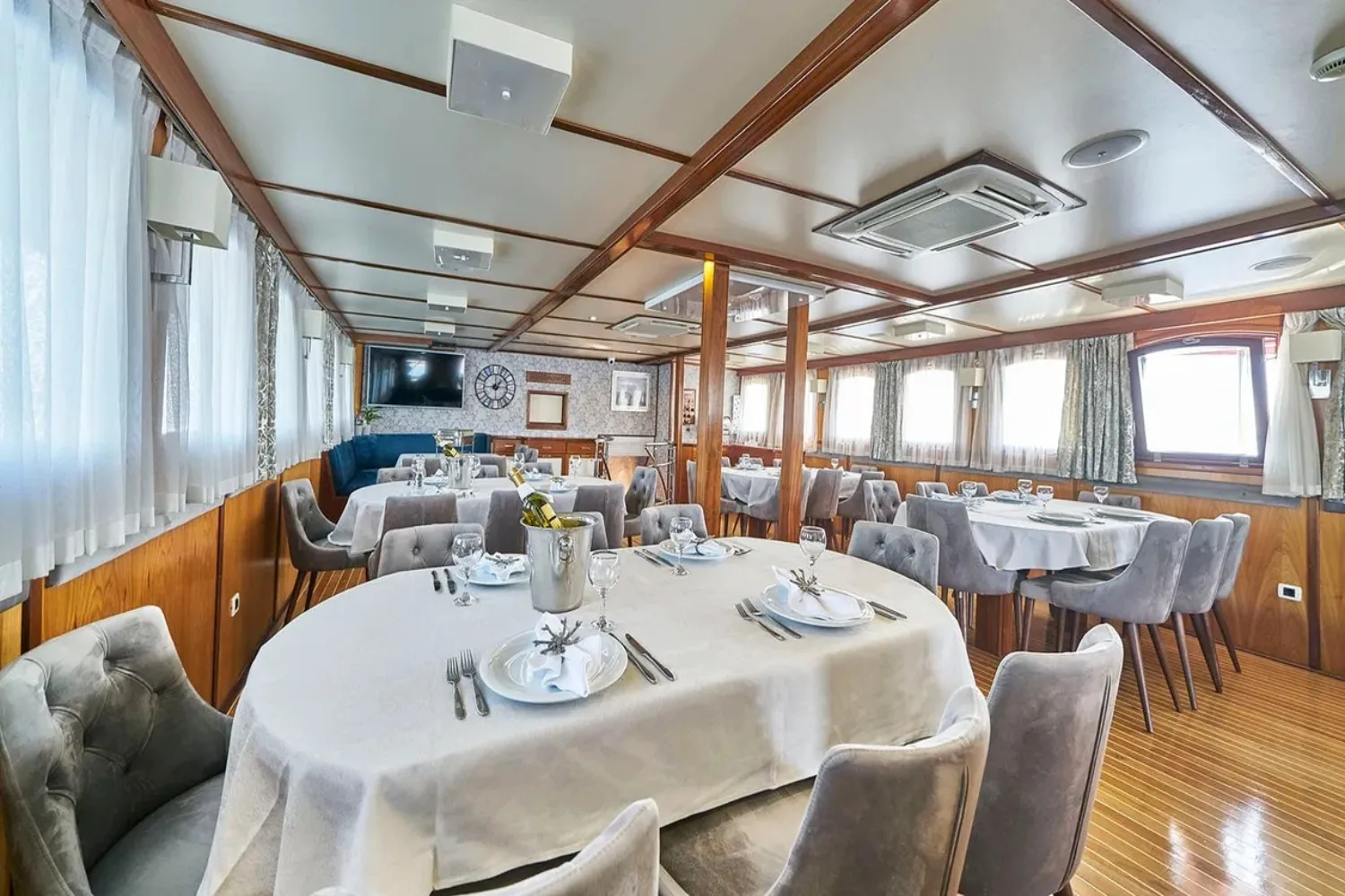 Amorena offers a sanctuary of serenity and sophistication, accommodating up to 40 guests in 19 thoughtfully designed cabins. Each room is a haven of tranquility, where the gentle sway of the ocean lulls you into a peaceful slumber, and the soft light of dawn beckons you to a new day of exploration. The interiors are tastefully appointed, blending understated elegance with contemporary comforts, ensuring that each guest enjoys a restful retreat. Whether retiring for the evening or stealing a quiet moment during the day, the accommodations aboard Amorena provide a perfect balance of privacy and social space, making every night aboard as memorable as the days.
