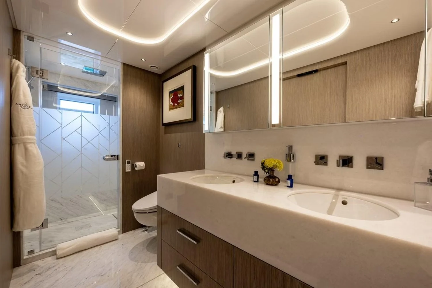 Awaken to the gentle rhythm of the ocean in one of Ancora’s five impeccably appointed cabins, each a haven of comfort and style. Hosting up to ten guests, the accommodations include a sumptuous master suite and two spacious double cabins, complemented by two versatile convertible rooms. Every cabin offers a sanctuary where the interplay of light and sea breeze creates a serene retreat, inviting you to unwind and indulge in the art of leisure.