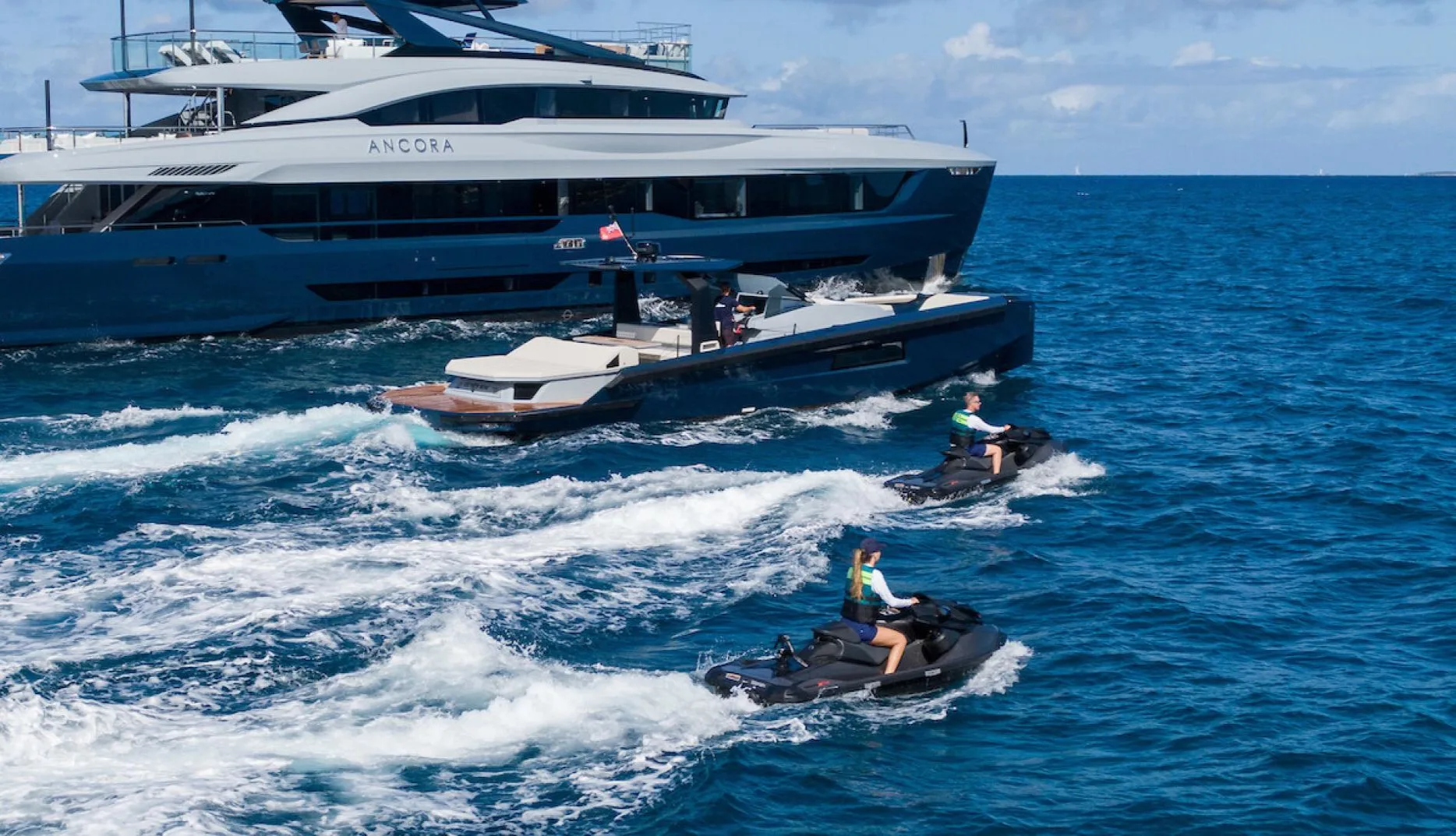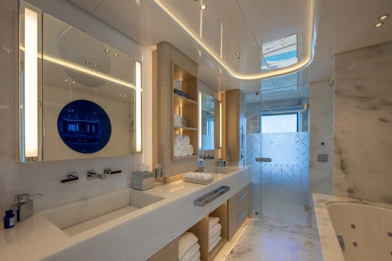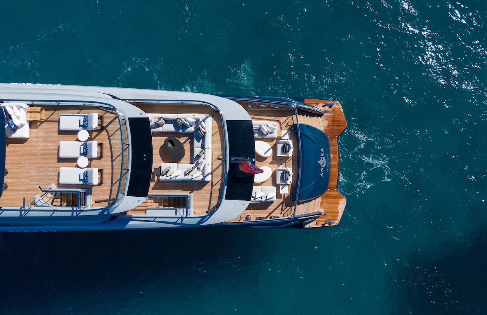 Onboard Ancora, spaces are thoughtfully designed to elevate every moment. Bask in the sun on the expansive deck, where a jacuzzi awaits with the promise of a refreshing dip. As evening falls, the underwater lights transform the sea into a shimmering spectacle, perfect for a night of stargazing. The beach club serves as a tranquil retreat by day, while the exterior bar becomes the heart of social gatherings under the stars. With at-anchor stabilizers ensuring calm waters and Wi-Fi keeping you connected, every detail is crafted for your utmost pleasure.
