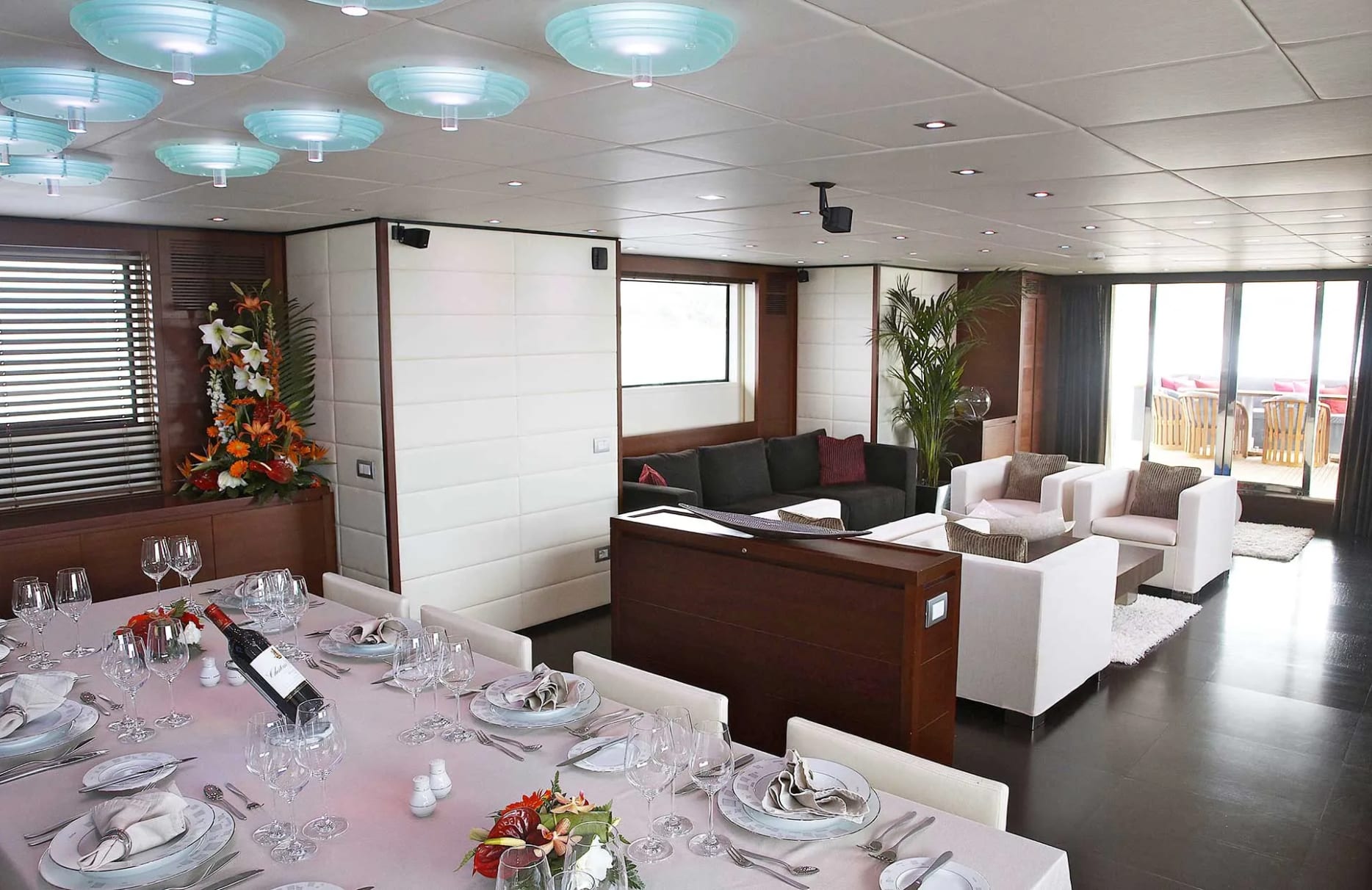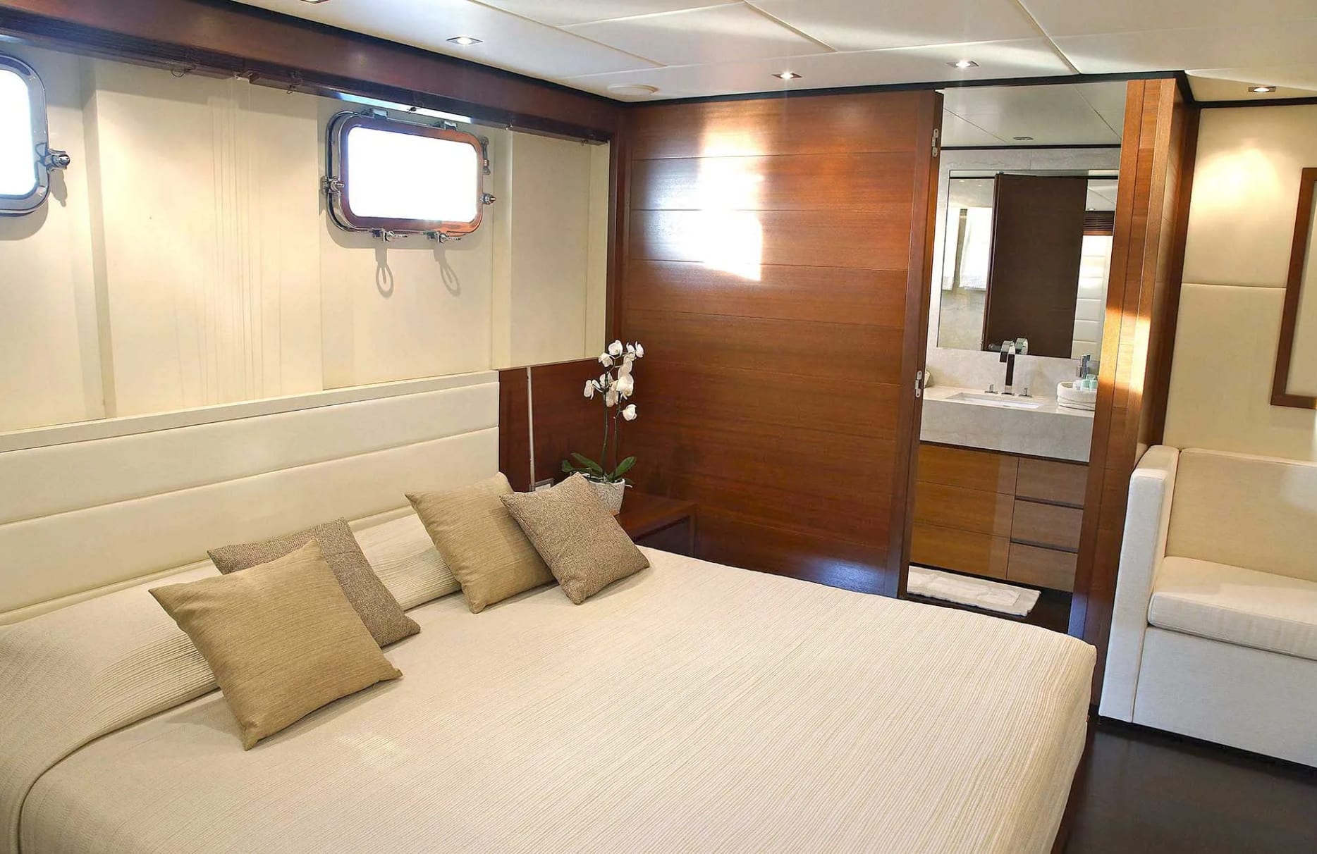 On Annamia, life unfolds gracefully, with her spacious decks inviting you to experience a myriad of activities. Whether you’re savoring the tranquility of a jacuzzi soak, indulging in alfresco dining with panoramic views, or lounging on sunpads under the vast sky, this yacht provides a sanctuary of sophistication and leisure. Her refined mahogany and marble interiors accommodate up to 12 guests in five staterooms, ensuring each day flows seamlessly from the gentle lap of the sea to the vibrant life ashore.