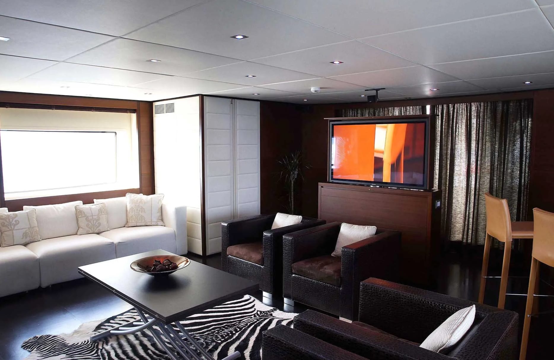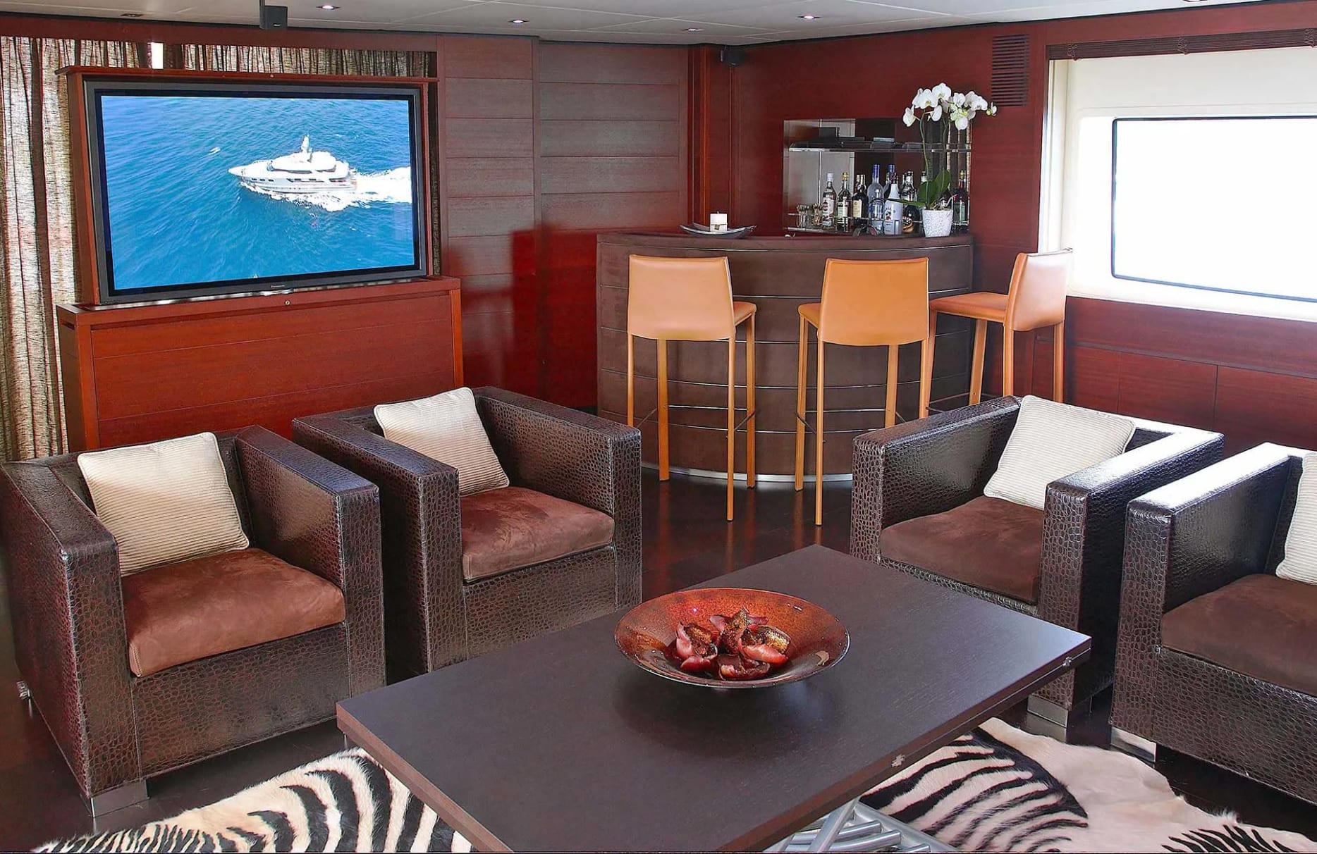 Annamia’s accommodations are a testament to refined living, with five sumptuous staterooms designed to host up to 12 guests. Each room is a haven of tranquility, combining rich mahogany and earl grey marble to create an environment of understated elegance. Awaken to the gentle sway of the yacht and the promise of another day of exploration, as the master suite and its accompanying double and twin cabins offer a versatile living space perfect for families or gatherings with friends.