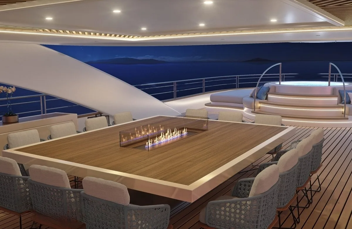 Life aboard Anthea is an invitation to indulge in the finer things. As the day begins, guests can start with an invigorating workout in the state-of-the-art gym, followed by a rejuvenating session in the sauna. The deck jacuzzi offers a perfect spot to unwind, with panoramic views that stretch to the horizon. Evenings are spent under the stars, with a projector ready to transform the deck into your private cinema, while the rich sound from the iPod docking station fills the air. The seamless Wi-Fi connection ensures you remain in touch with the world, even as you drift into a realm of tranquility.