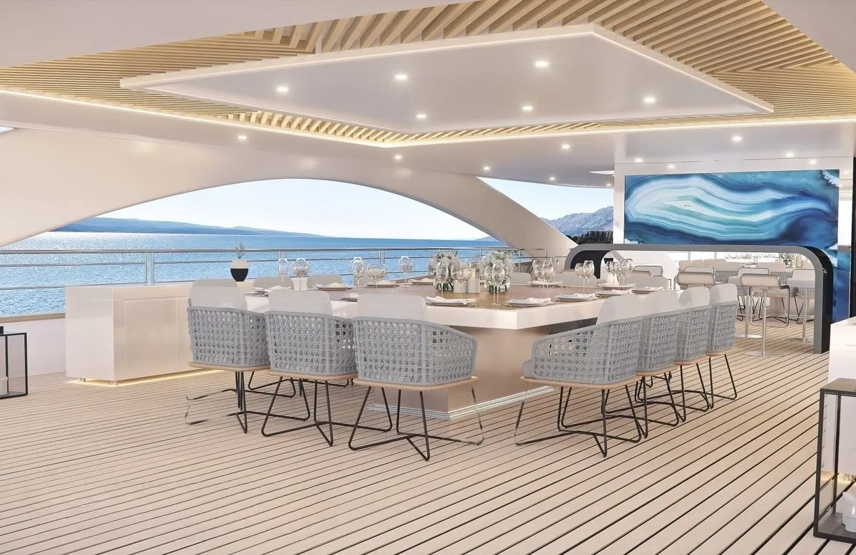 Anthea’s accommodations are a testament to thoughtful design and comfort, welcoming up to 20 guests across 10 spacious cabins. Each morning brings a gentle awakening, as sunlight filters through elegant interiors designed to open to the sea, creating an ambiance of airy sophistication. The master suite and nine double cabins, complemented by four twin cabins, offer a diverse array of sleeping arrangements, ensuring every guest finds their perfect haven. With 18 beds, including king and convertible options, the experience is tailored to both relaxation and adventure.