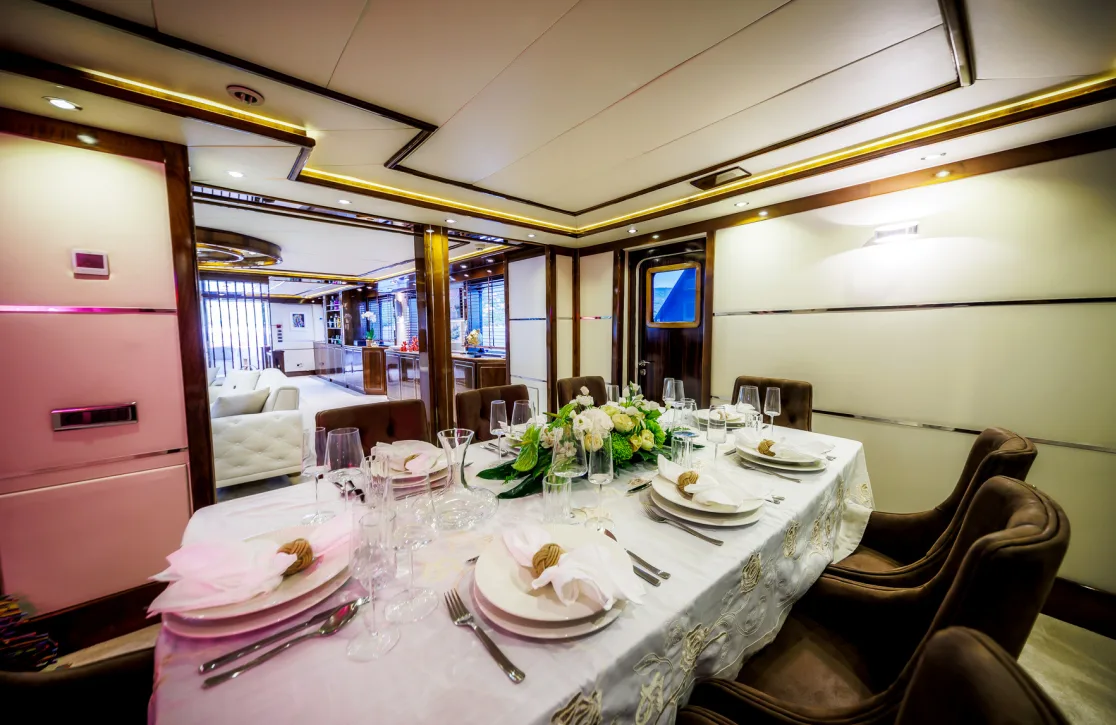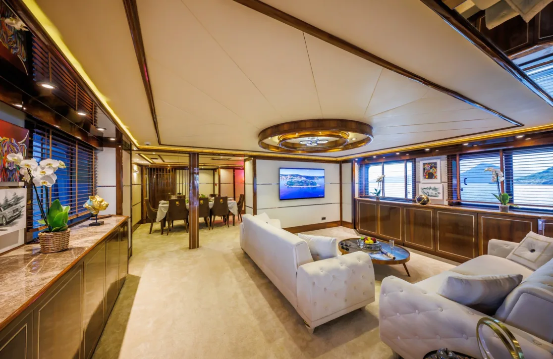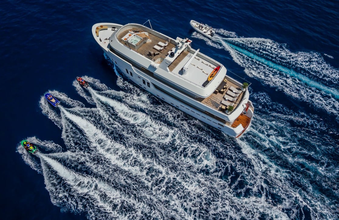 Built in 2010, ‘Apna’ is a testament to robust design and sophisticated living. Her steel hull and superstructure ensure smooth and stable travel, whether you’re gliding at a leisurely pace or reaching her top speed of 14 knots. The yacht’s ambiance is crafted for both relaxation and adventure, with spacious outdoor living areas that transform any journey into a lavish escapade. Imagine a week spent in the Mediterranean sun, where each day unfolds with new discoveries and evenings conclude with tranquil ocean vistas.