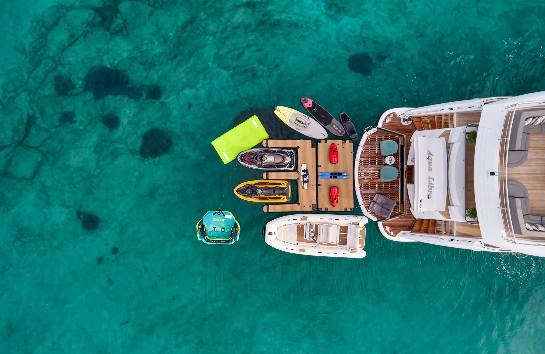 Accommodating up to 11 guests across five lavish cabins, Aqua Libra offers a retreat that blends tranquility with elegance. The master suite, with its sweeping sea views, invites you to wake each morning to the gentle lull of the waves. Two VIP cabins and two twin rooms, each with its own en suite, provide a sanctuary for restful nights and leisurely mornings, ensuring every guest enjoys the perfect balance of privacy and comfort.