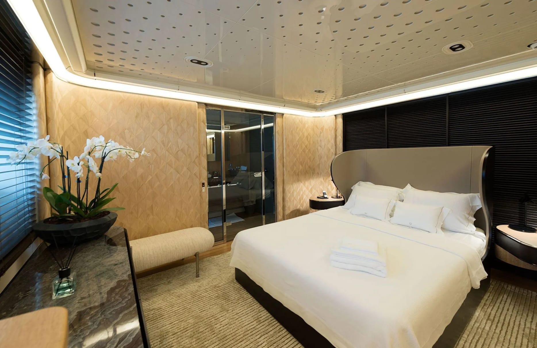 The accommodations aboard Aquarius are an ode to elegance and versatility. With room for up to eight guests, the yacht features five beautifully appointed cabins, including a master suite, two VIP cabins, and a flexible cabin that can be configured to suit your needs. Waking up to the gentle sway of the ocean, guests find themselves enveloped in comfort, with bespoke furnishings and meticulous attention to detail creating a serene retreat. Each room is a private sanctuary, promising restful nights and mornings filled with the promise of new adventures.
