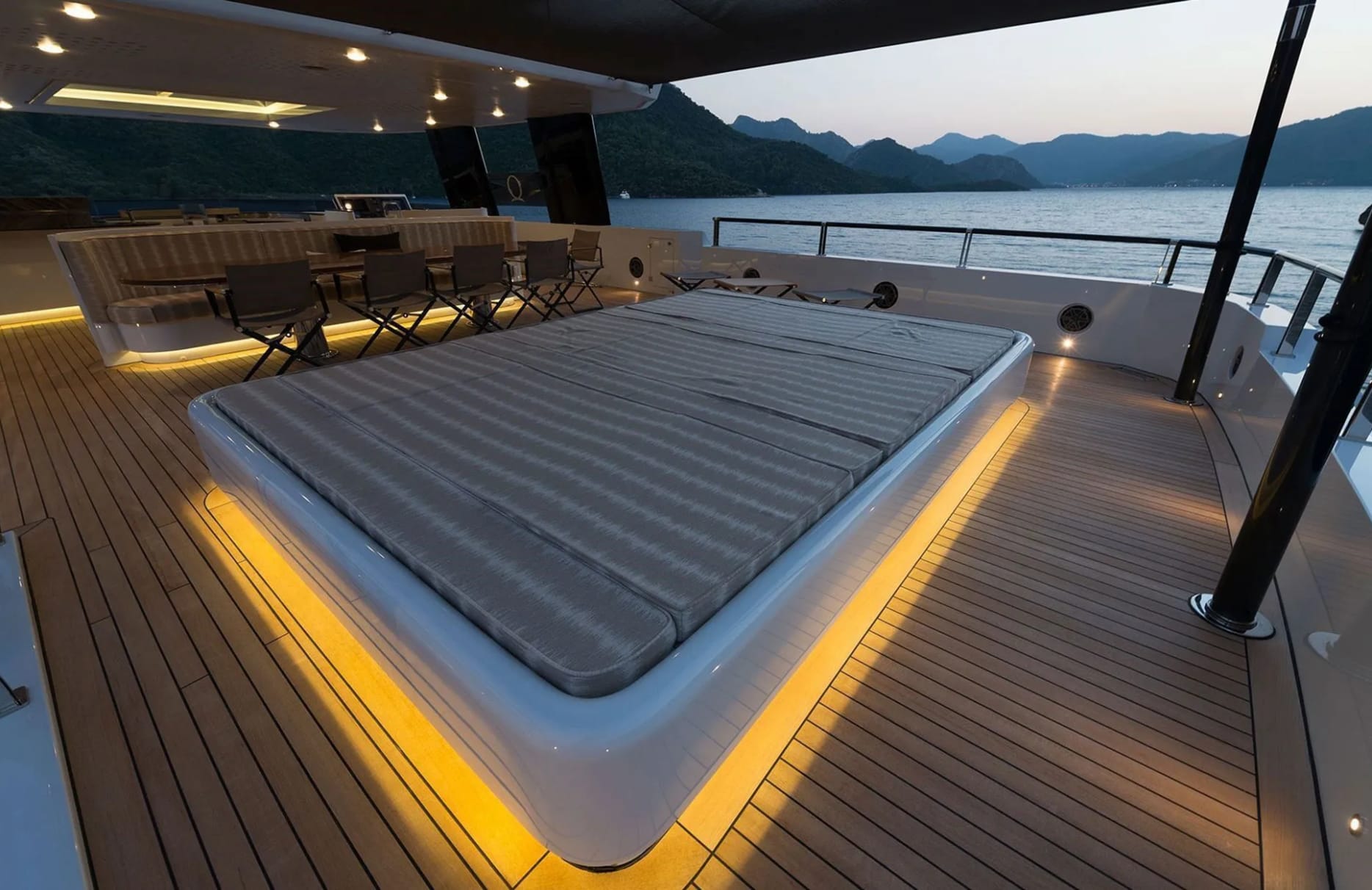 Step into a realm of refined comfort aboard Aquarius, where each space has been thoughtfully crafted to enhance your journey. The yacht boasts a harmonious blend of relaxation and entertainment, with a sun deck that invites leisurely afternoons and a Jacuzzi that beckons under a starlit sky. For those seeking wellness, the gym and spa provide a sanctuary of rejuvenation. Meanwhile, technology ensures connectivity with Wi-Fi and satellite TV, seamlessly integrating modern convenience with the timeless allure of the sea.