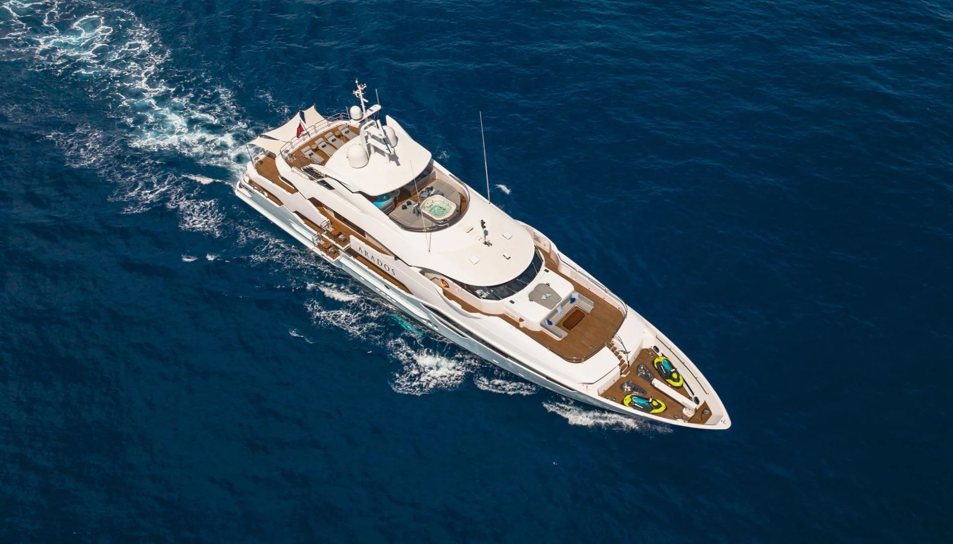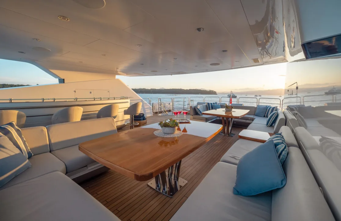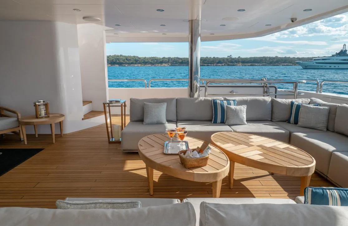 Onboard Arados, each day unfolds with new delights. Indulge in a refreshing soak in the deck jacuzzi as you sip on a perfectly chilled beverage from the exterior bar, while the sun sets over the horizon. The sun deck offers a haven for sun worshippers, featuring inviting sunpads perfect for basking in the warm rays. As the evening draws in, gather with friends in the beach club, a serene space right at the water’s edge, where gentle waves offer a soothing soundtrack to your conversations. With air conditioning throughout, every corner of the yacht promises comfort, while Wi-Fi keeps you seamlessly connected to the world beyond.