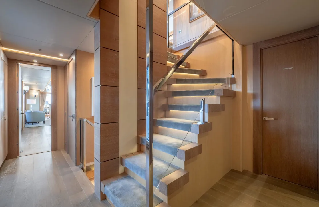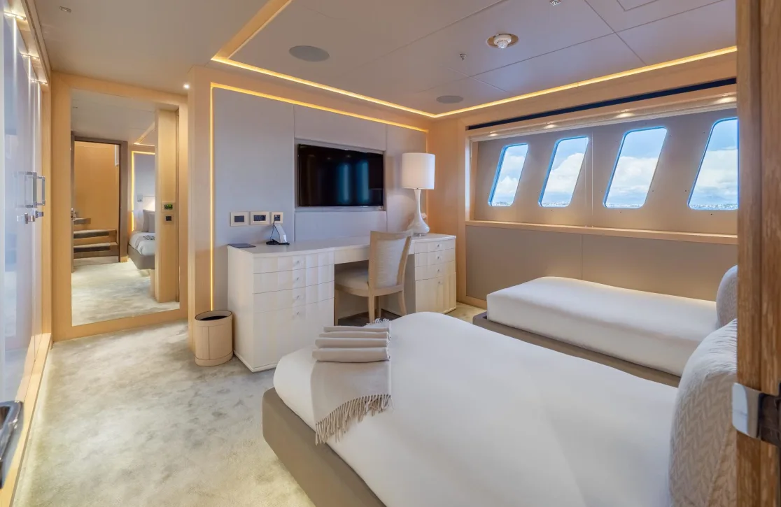 Nestled within Arados are exquisitely designed suites, where up to 10 guests find their sanctuary. Awaken in the master suite to gentle sea breezes and the allure of endless horizons. The yacht’s accommodations include two VIP cabins, two double cabins, and two twin cabins, each offering an oasis of tranquility. As the sun rises, natural light fills your room, creating a serene atmosphere that sets the tone for the day ahead. The thoughtful design of these spaces ensures supreme comfort, making every night aboard a restful escape.