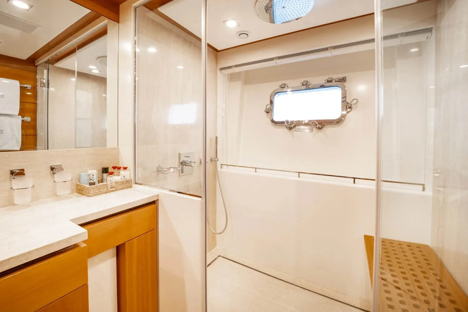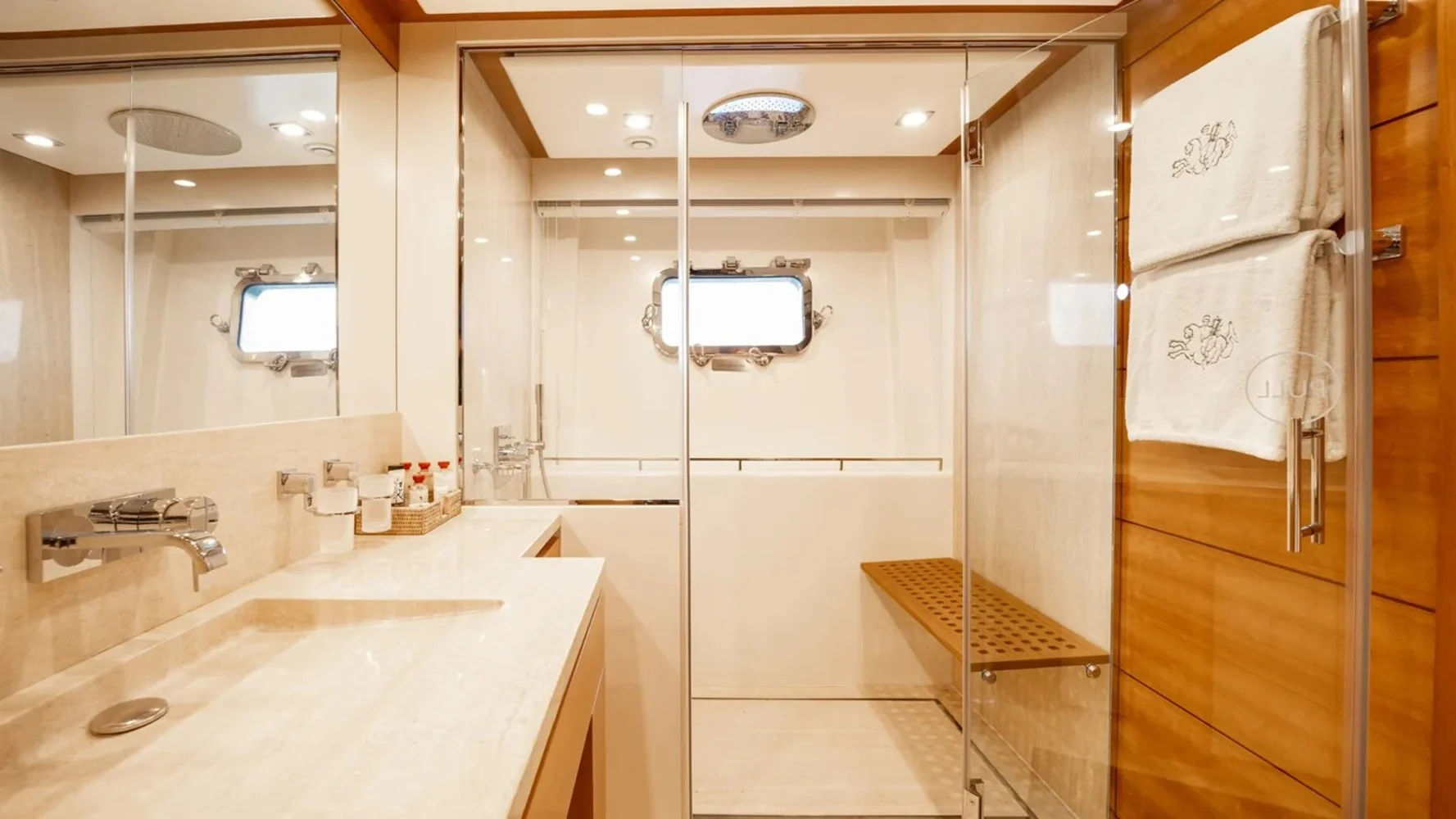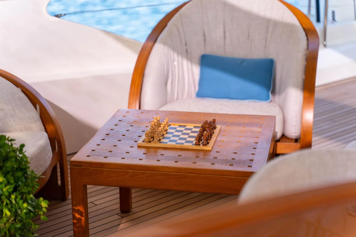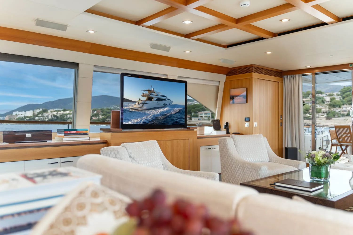 On board Arion, every detail has been considered to enhance your experience. As you wander through her inviting spaces, you can connect with the world using the state-of-the-art Wi-Fi or enjoy a cinematic experience with video on-demand. The sun deck beckons for leisurely afternoons under the Mediterranean sun, while the air-conditioned interiors provide a cool retreat, ensuring comfort in any climate. Arion’s stabilizers both underway and at anchor ensure a smooth journey, allowing you to fully immerse yourself in the tranquility of the sea.