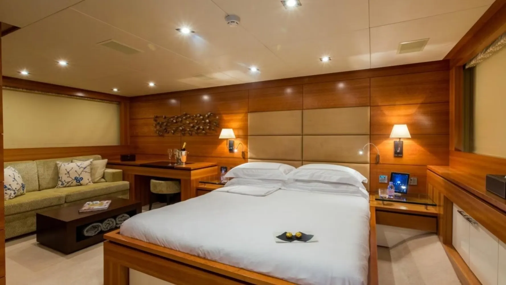 Arion offers a haven for up to nine guests, with four beautifully appointed cabins that promise restful nights and refreshing mornings. The master suite and two VIP cabins provide a sanctuary of elegance, while the twin cabin offers versatility for families. Waking up to the gentle sway of the yacht, you’ll be greeted by panoramic sea views and the promise of another day of adventure. The child-friendly setup ensures that every member of the family will feel at home, enveloped in the care of a dedicated crew.