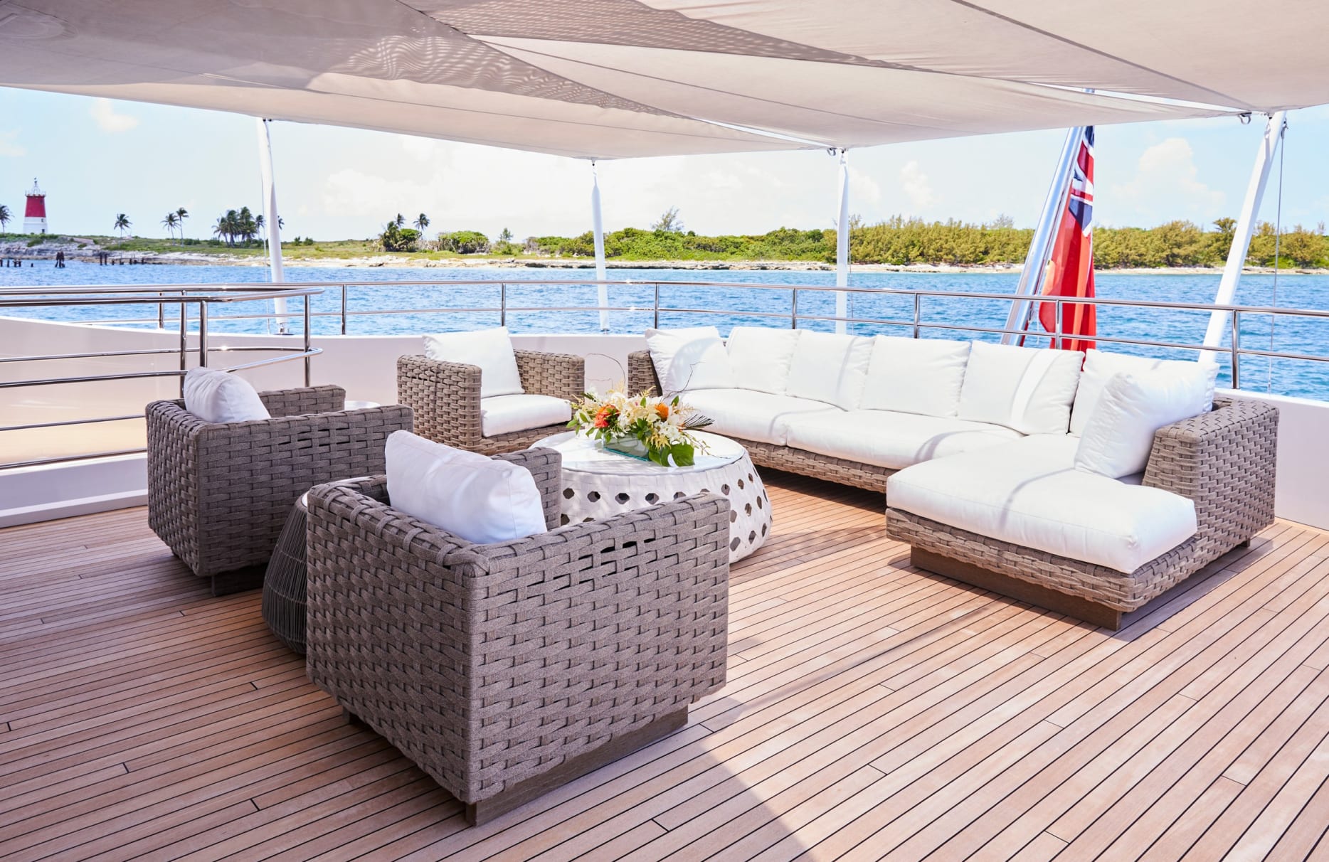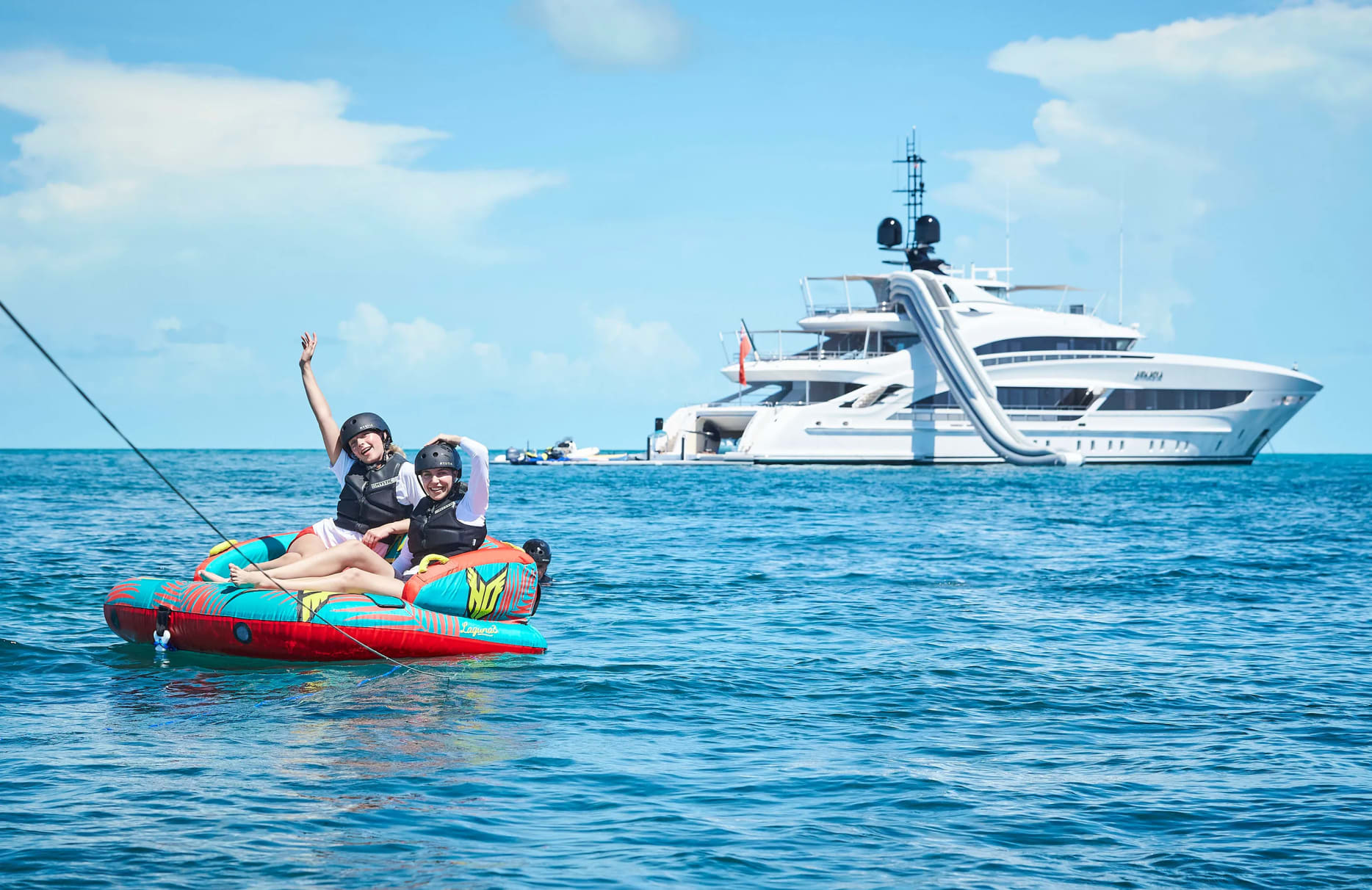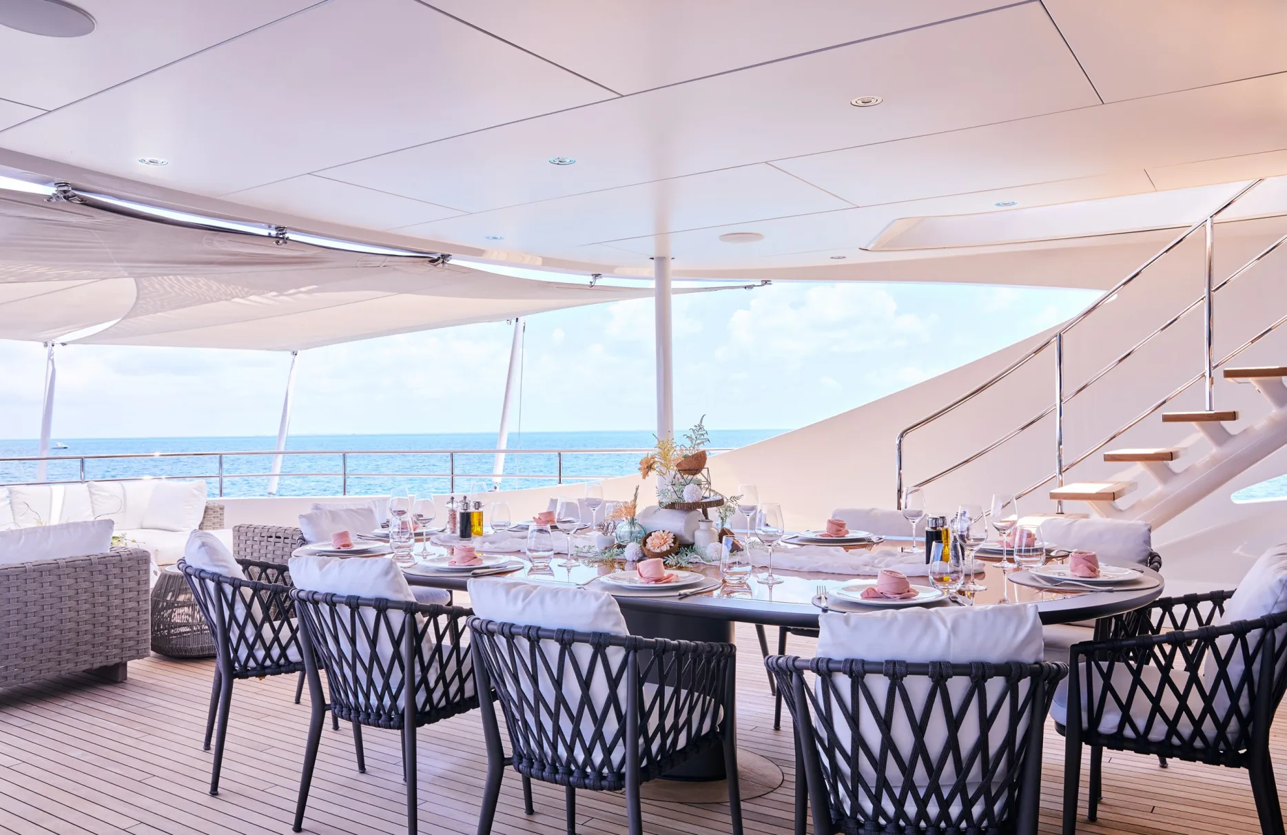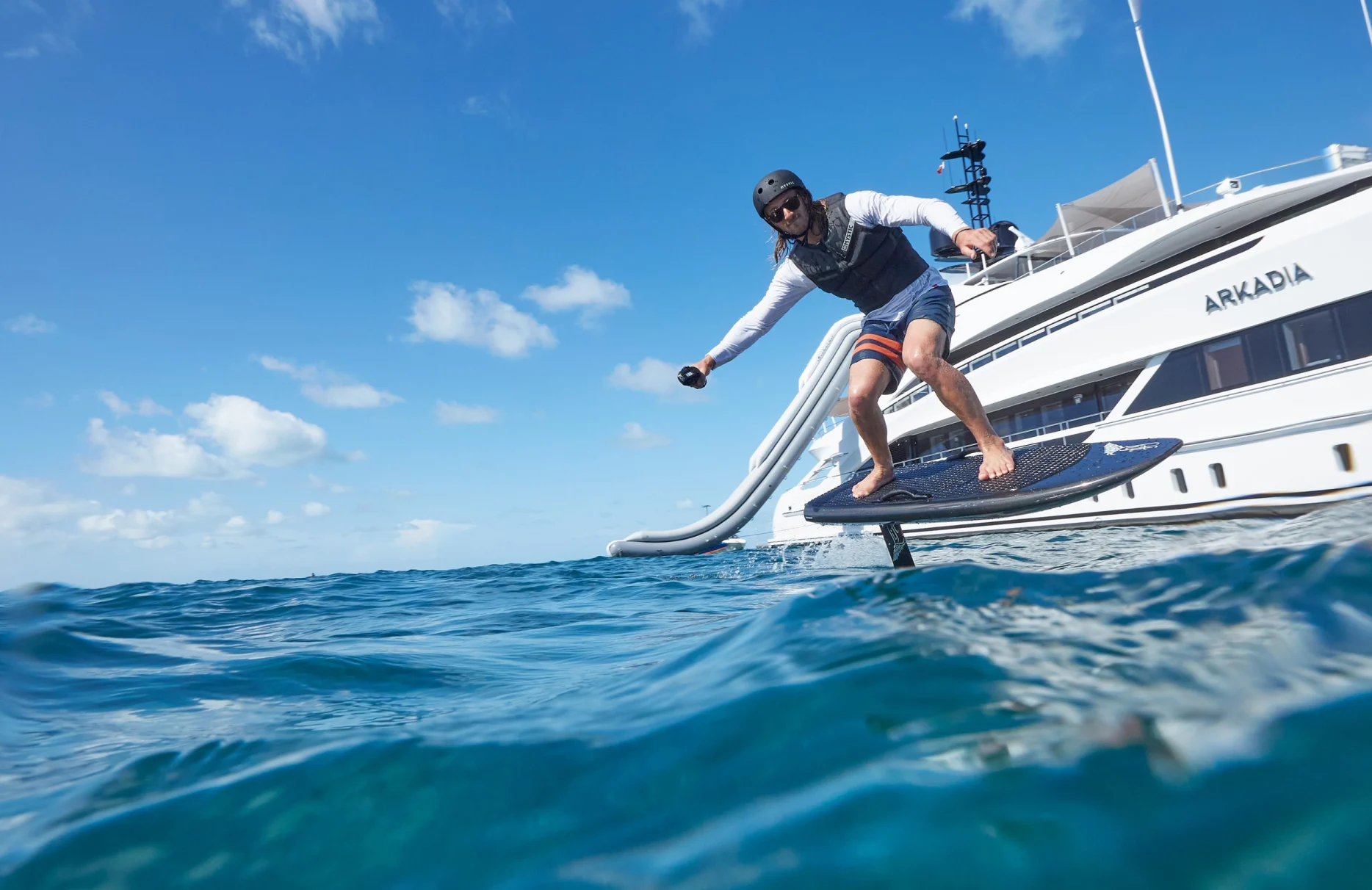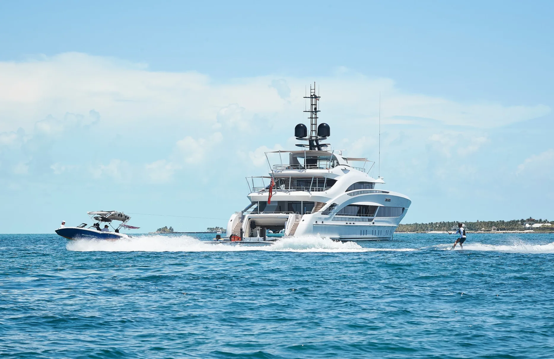 While the Arkadia invites you to revel in her inviting interiors and expansive decks, she also beckons you to explore the world beyond her hull. Each day aboard can be as serene or adventurous as you wish, with opportunities to indulge in water sports, visit secluded beaches, or savor the culinary delights prepared by your dedicated crew. With nine attentive crew members ensuring every detail is perfect, your time aboard is a bespoke experience tailored to your desires. Arkadia is more than a yacht; she is your gateway to a world of refined exploration.