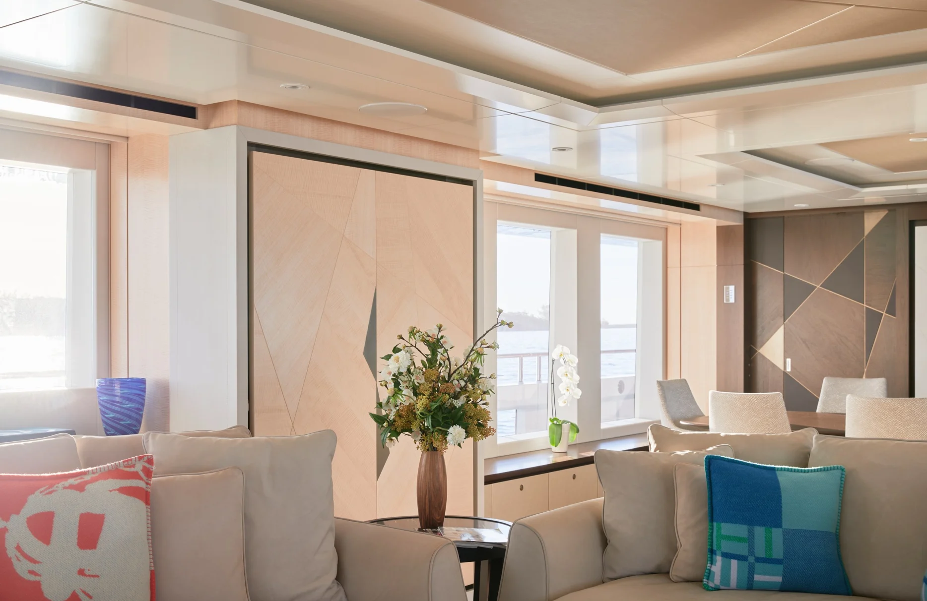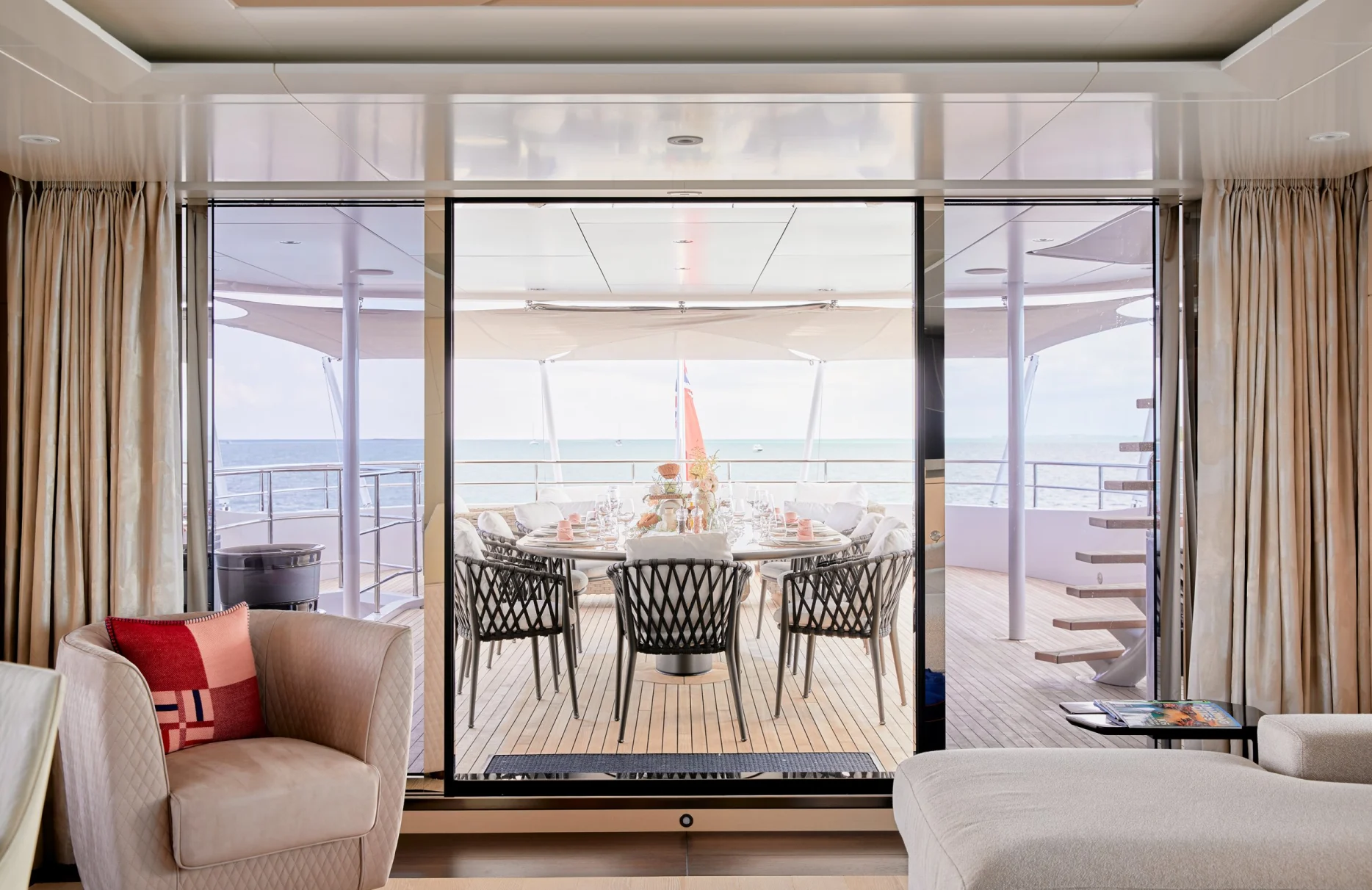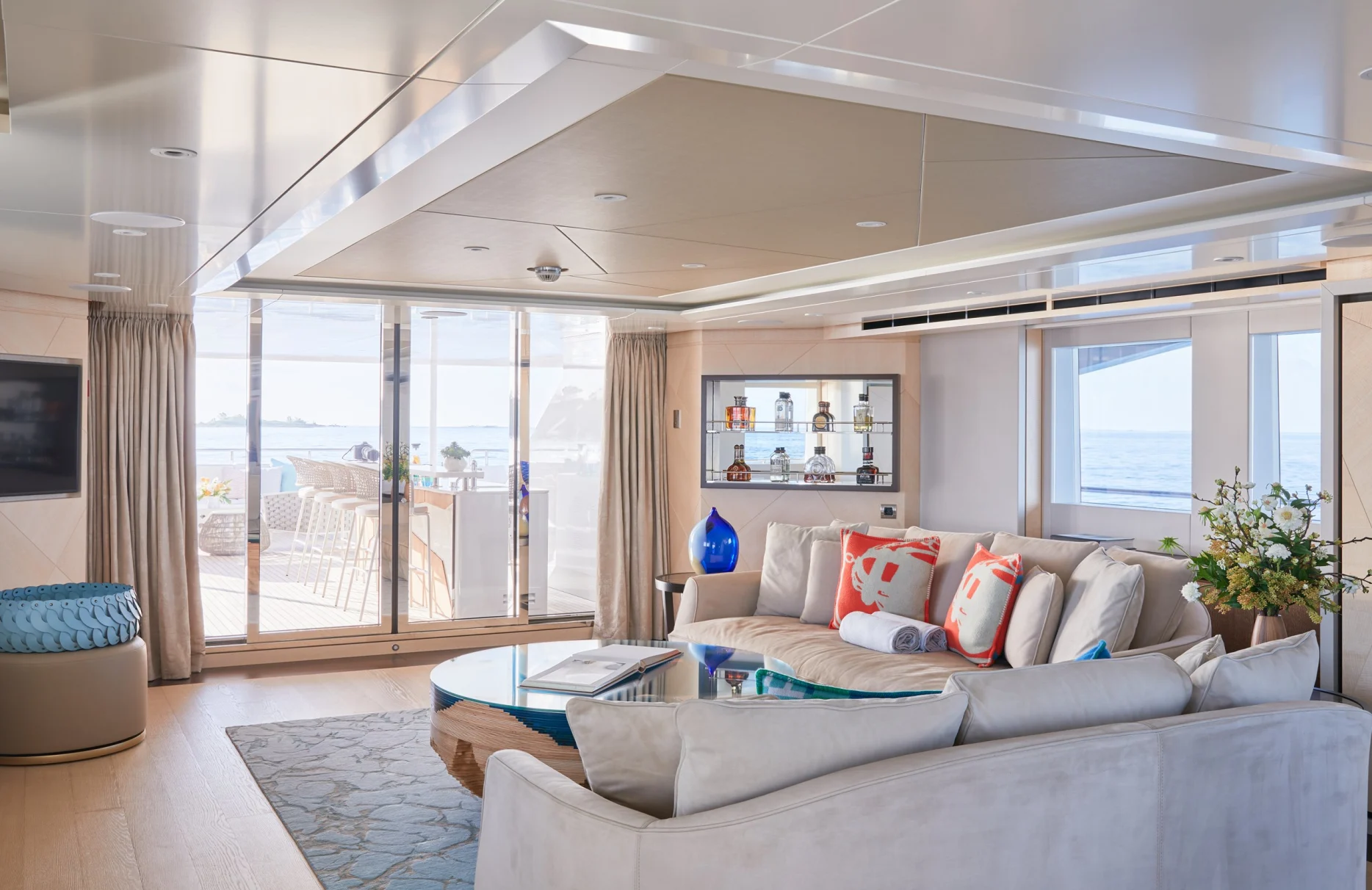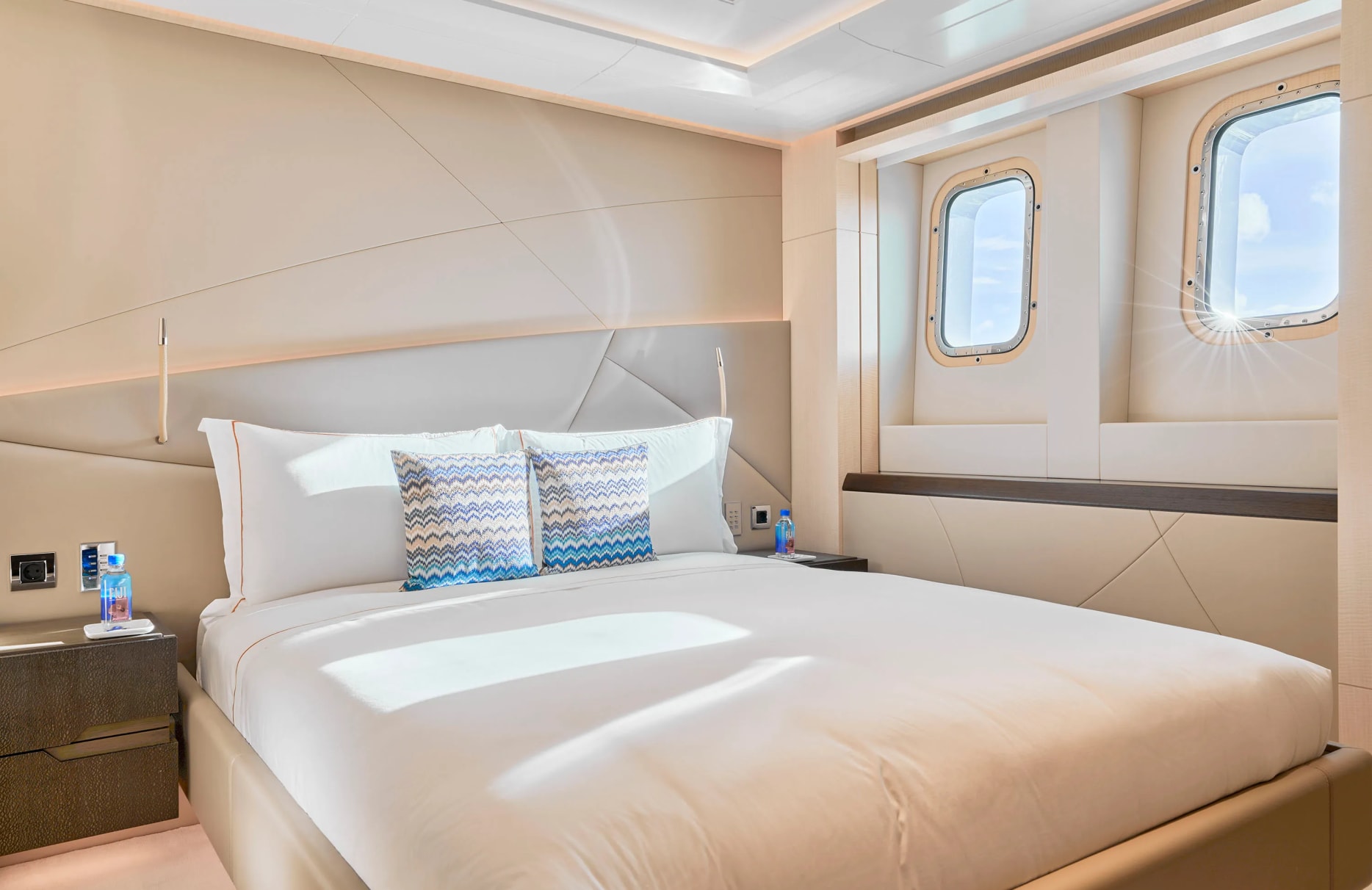 Arkadia offers a sanctuary for up to ten guests, with five exquisite suites that promise restful nights and vibrant mornings. Each cabin is a testament to refined design, where waking up to the gentle sway of the sea feels both thrilling and serene. The master suite, with its private study and dressing room, offers a personal retreat, while the double cabins provide relaxation and privacy. The flexible twin/double cabin can be adapted to your needs, ensuring each guest finds their perfect space. Here, the gentle whisper of the ocean lulls you to sleep, and the anticipation of another day of discovery wakes you with the first light.