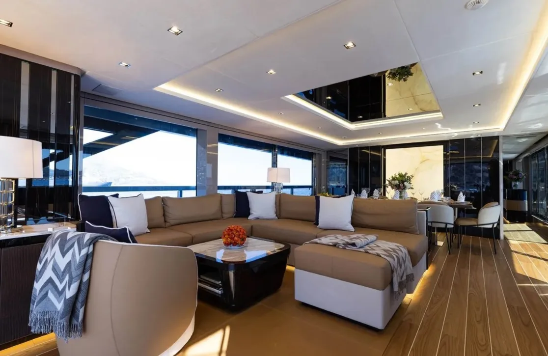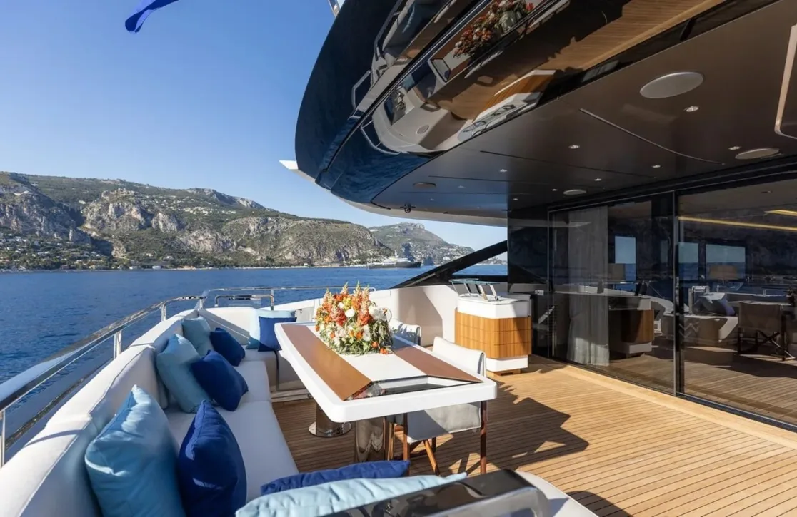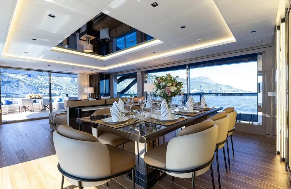 The days aboard Artemis unfold with a rhythm of leisure and delight. Recline under the sun on the expansive sundeck, or find serenity soaking in the deck jacuzzi while gazing at the endless horizon. The exterior bar becomes a hub of laughter and conversation as the sun dips below the waves. Inside, every corner is graced with seamless Wi-Fi, ensuring that comfort and connectivity are at your fingertips, enhanced by the all-encompassing air conditioning that maintains an oasis of coolness amidst the warmth of the sea.