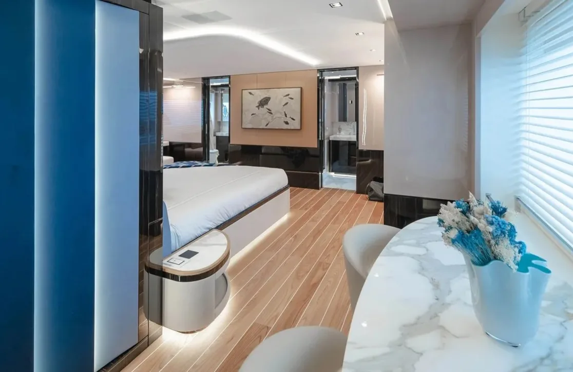 Retreat to the sanctuary of Artemis’ four exquisitely appointed cabins, where up to eight guests can unwind in unrivaled comfort. Wake up to the gentle sway of the sea in a master suite or one of the versatile double/twin staterooms, each designed to provide a personal haven. These spaces envelop you in tranquility, offering a private respite after a day of exploration, ensuring every night aboard Artemis is as restful as it is rejuvenating.