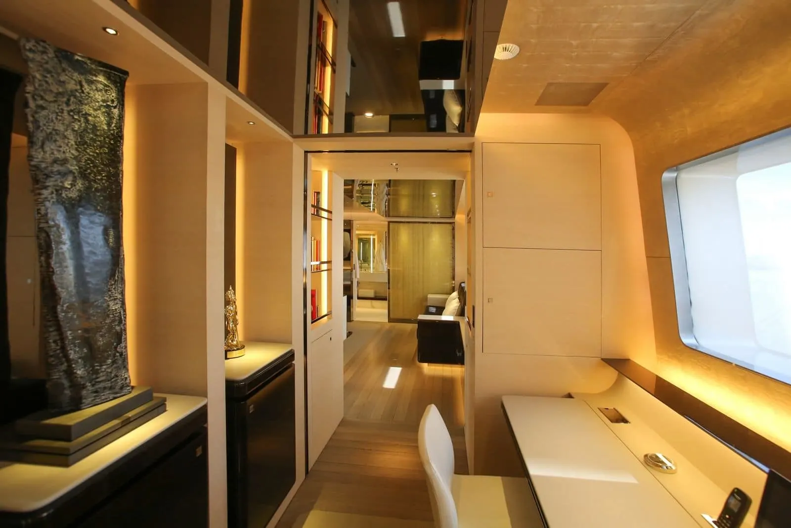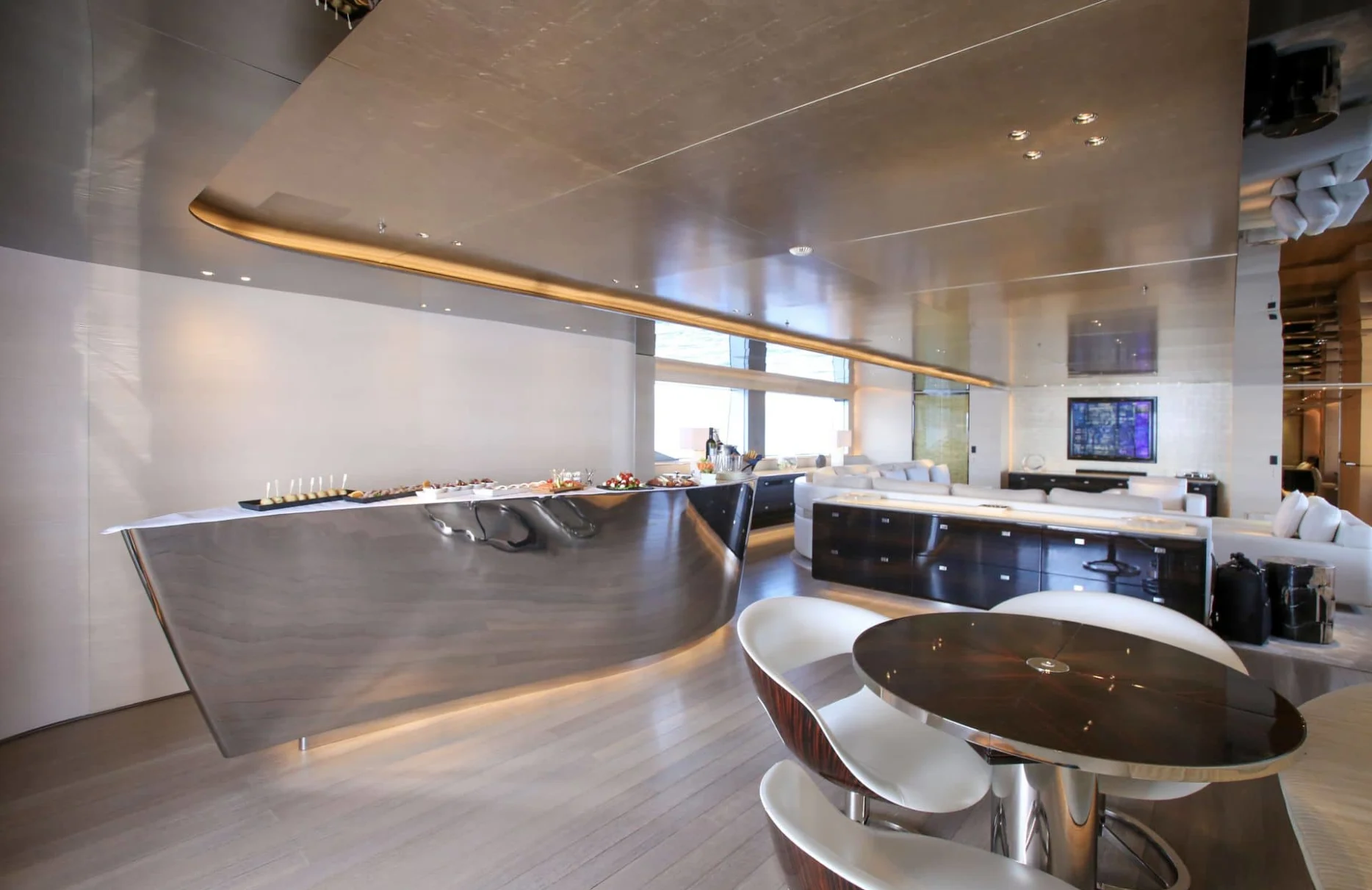 Designed by the illustrious Remi Tessier, the Aslec 4’s interiors are a harmonious dance of oak, ebony, and luxurious accents, creating a sophisticated yet inviting ambiance. Each space on board is an invitation to connect, whether sharing stories with friends in expansive lounges or savoring a quiet moment of reflection as the sun sets over the horizon. With a top speed of 16 knots, Aslec 4 effortlessly carries you towards new horizons, where the promise of discovery awaits both onboard and ashore.