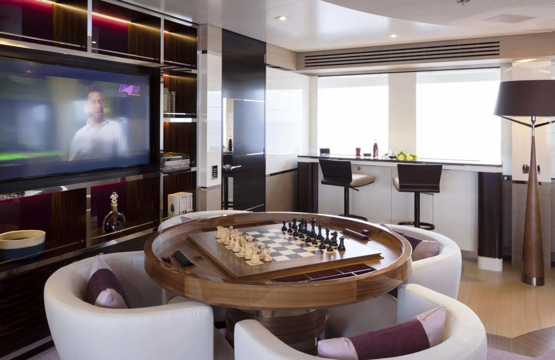 Asya’s interior is a haven of comfort, thoughtfully designed to accommodate up to 12 guests in five elegantly appointed cabins. The master suite is a sanctuary of its own, while two double cabins and two twin cabins provide versatile arrangements for families and friends. Each morning aboard Asya begins with gentle sunlight streaming through the windows, promising another day of nautical adventures. The cabins, adorned with plush furnishings and designed for ultimate relaxation, ensure that every night is as restful as the days are exhilarating.