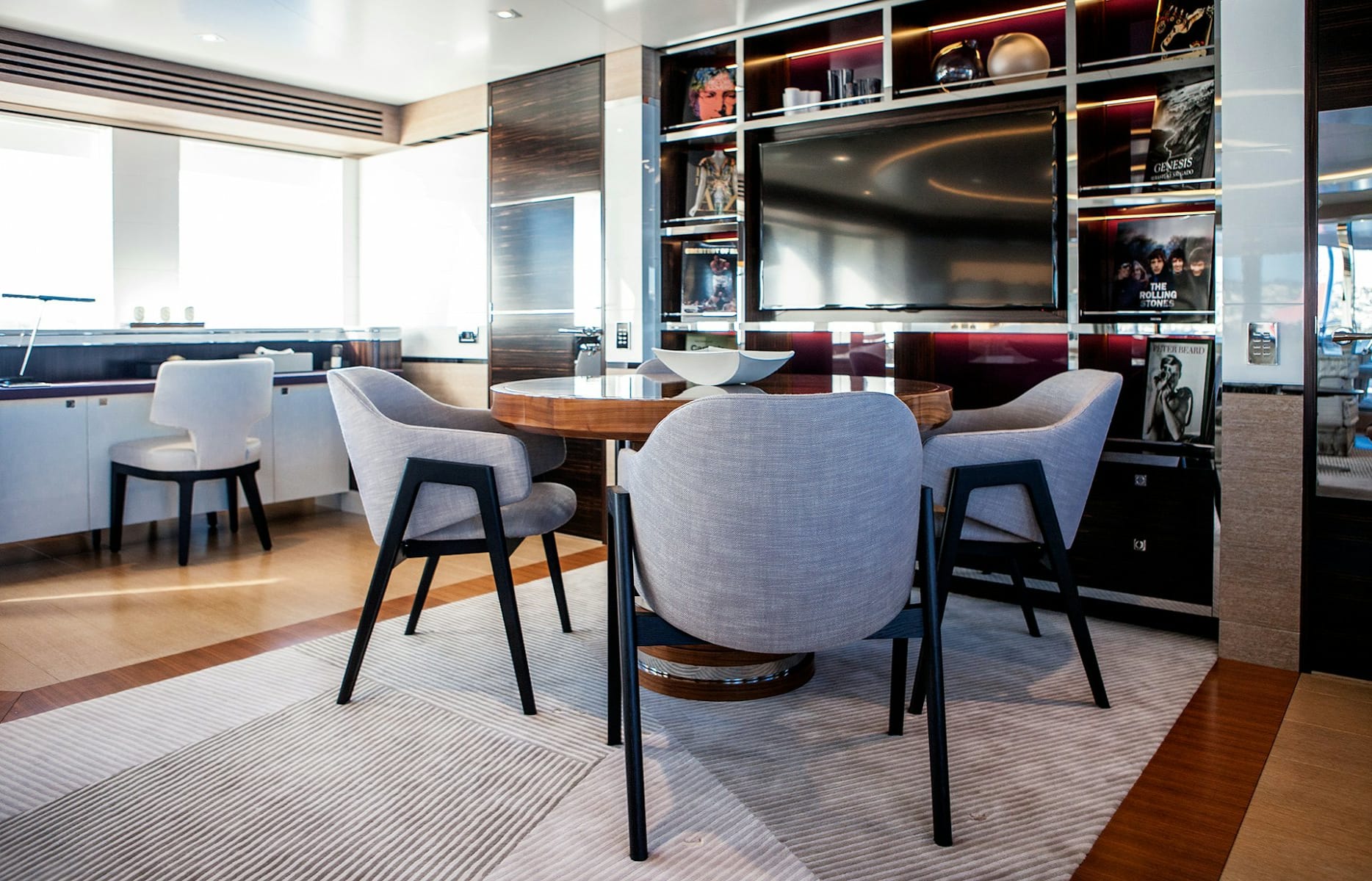 Asya’s interior is a haven of comfort, thoughtfully designed to accommodate up to 12 guests in five elegantly appointed cabins. The master suite is a sanctuary of its own, while two double cabins and two twin cabins provide versatile arrangements for families and friends. Each morning aboard Asya begins with gentle sunlight streaming through the windows, promising another day of nautical adventures. The cabins, adorned with plush furnishings and designed for ultimate relaxation, ensure that every night is as restful as the days are exhilarating.