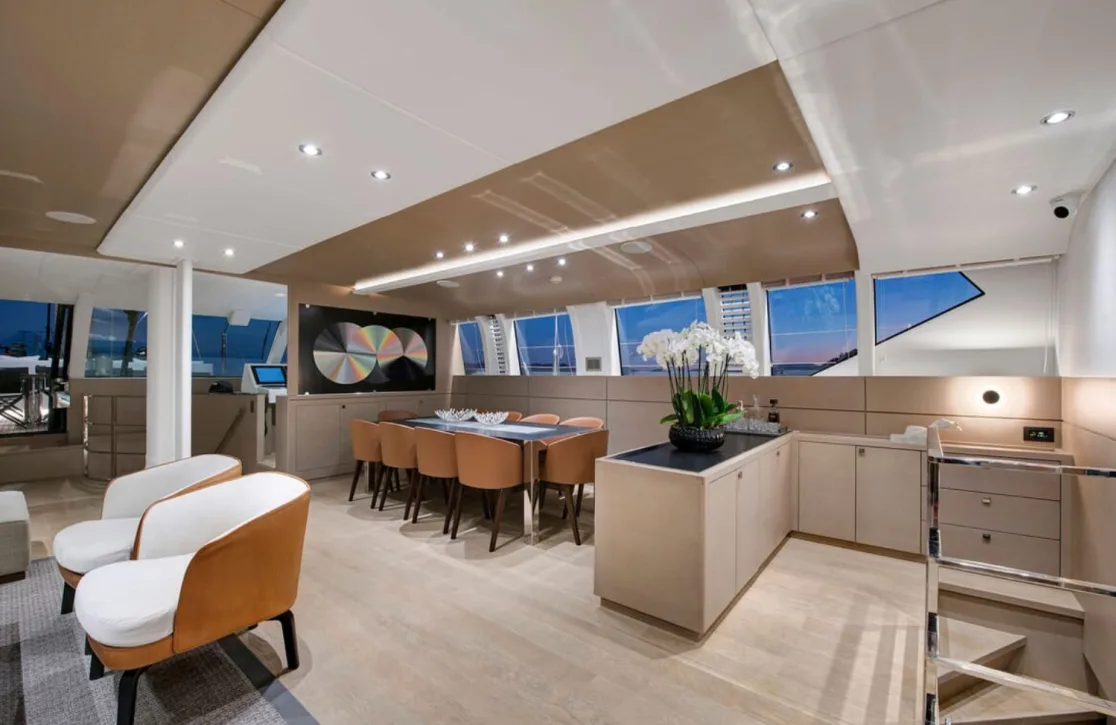 Aboard the Atlantika, every detail is designed to enhance your sense of well-being. Bask in the sun on expansive sunpads or retreat to the cool embrace of the air-conditioned interiors. High-speed Wi-Fi keeps you connected as you unwind on the sun deck, perhaps with a refreshing drink in hand. The swimming platform offers easy access to the sea, inviting you to dive into crystalline waters or simply enjoy the serenity of your surroundings. Whether you’re sipping cocktails at sunset or enjoying a quiet morning coffee, the ambiance aboard Atlantika is one of effortless grace and comfort.