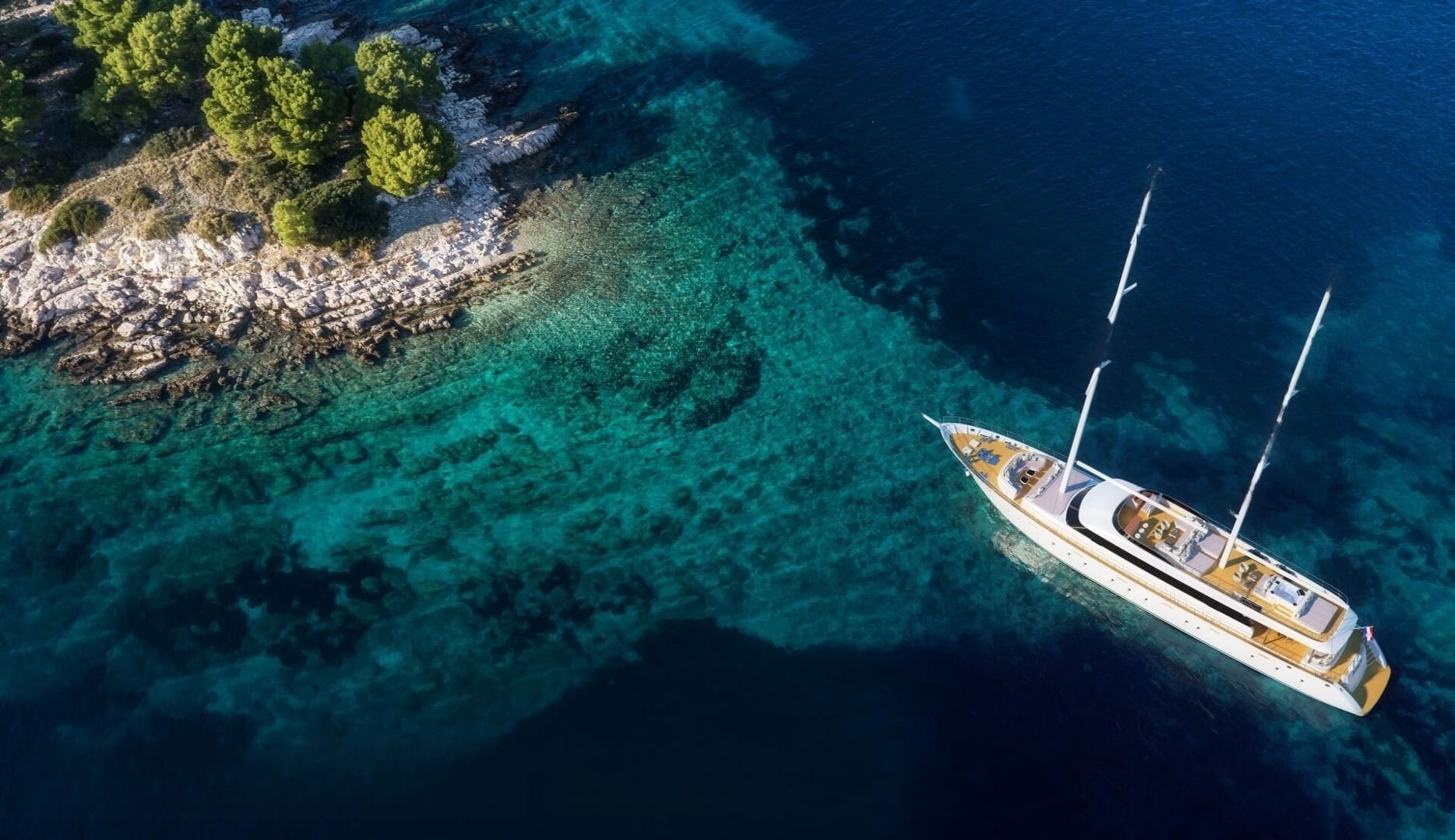 Within Aurum Sky, accommodations are as inviting as the gentle sea breeze. Designed to host up to 12 discerning guests across six sumptuous cabins, each space combines elegance with comfort. Wake up to the soothing sounds of waves in the master suite or one of the luxurious double or flexible twin cabins, where every detail has been crafted to provide a personal retreat. As the day unfolds, the plush king and queen-sized beds ensure restful nights, while the attentive crew of six stands ready to enhance your stay.
