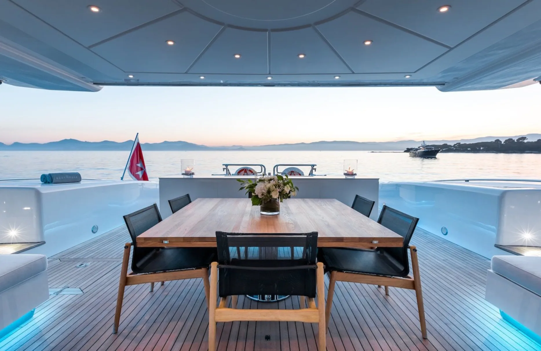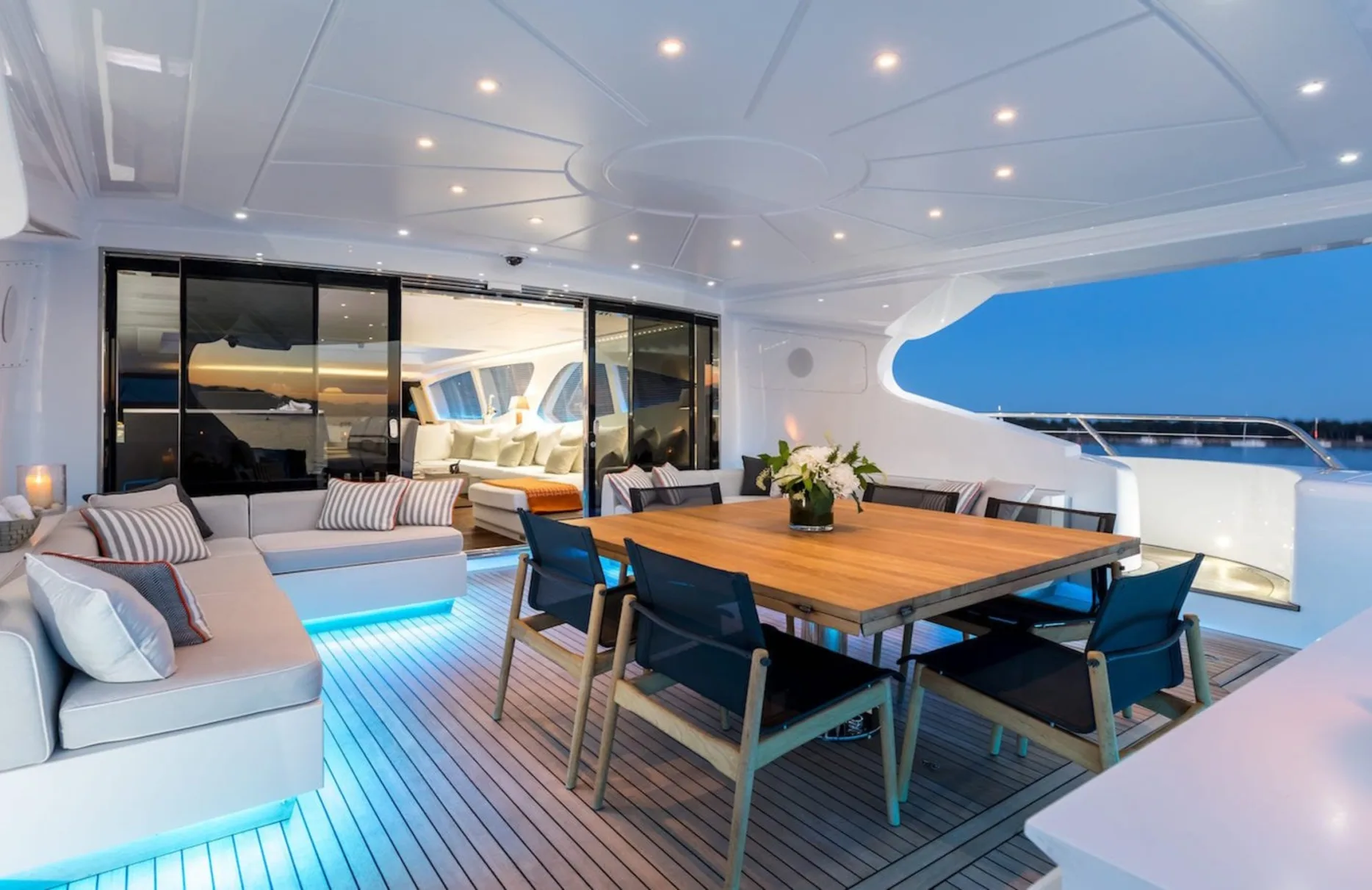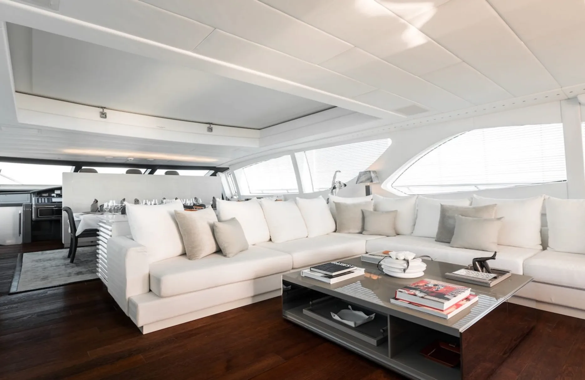Onboard Beachouse, every detail is curated to elevate your experience. The open spaces and thoughtfully designed social areas offer a serene sanctuary where you can enjoy both intimate gatherings and vibrant celebrations. Feel the gentle sea breeze as you unwind on the foredeck seating with a table, perfect for alfresco dining or sunset cocktails. Retreat to the sun deck where sunpads invite you to soak up the sun, or engage in a revitalizing workout with the gym equipment available. Wi-Fi keeps you connected, while at-anchor and underway stabilizers ensure a smooth experience, letting you truly relax and enjoy the tranquility of your surroundings.