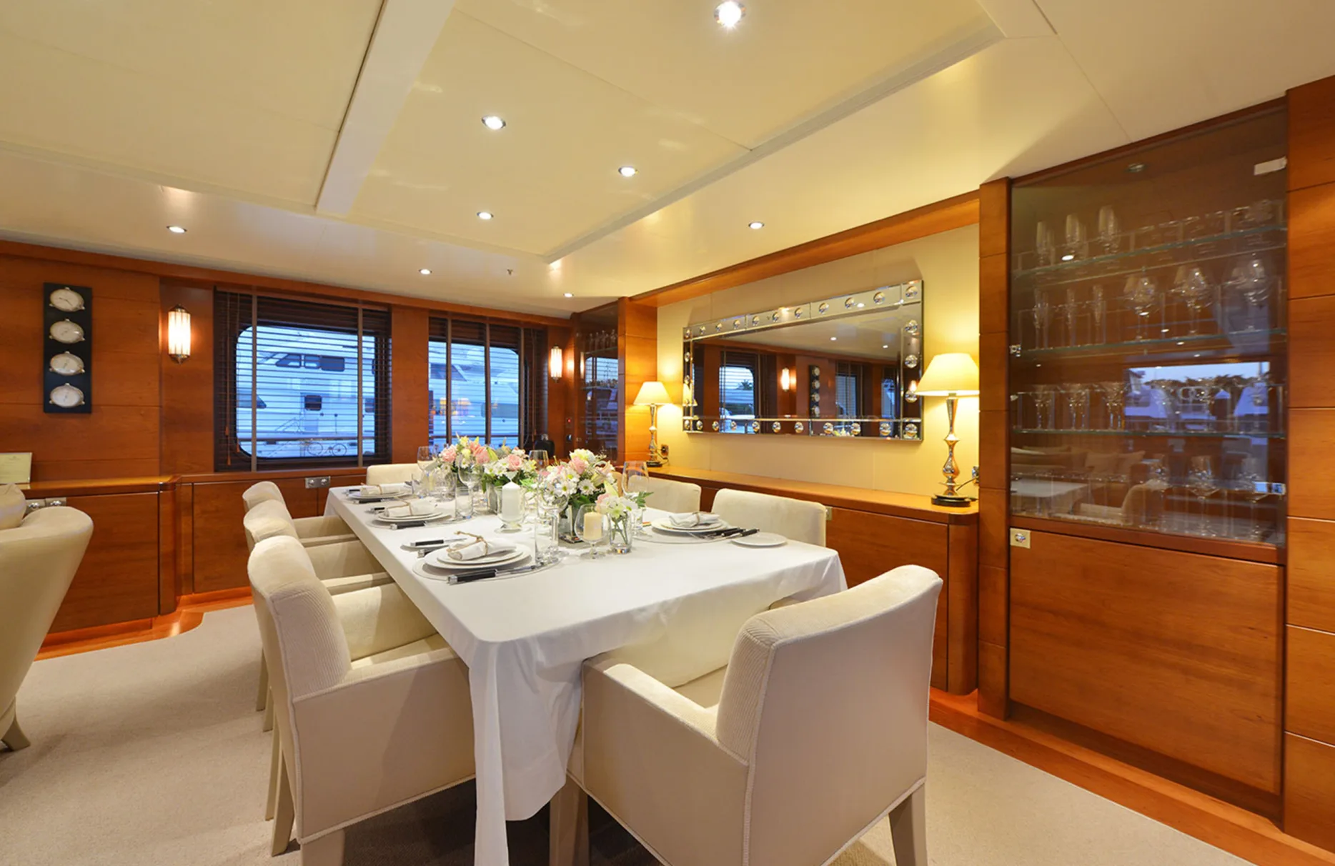 Beluga offers a sanctuary of comfort and elegance for up to 12 guests across its five beautifully appointed cabins. The master suite and accompanying cabins, including two double and two twin rooms, provide a versatile arrangement, perfect for families or groups. Each space is meticulously designed to offer a restful retreat, where the gentle lull of the sea lulls you to sleep, and the morning light streaming through the windows invites you to start another day of adventure. With plush bedding and thoughtful touches, every cabin ensures a peaceful and restorative experience, making each night aboard as delightful as the days spent exploring.