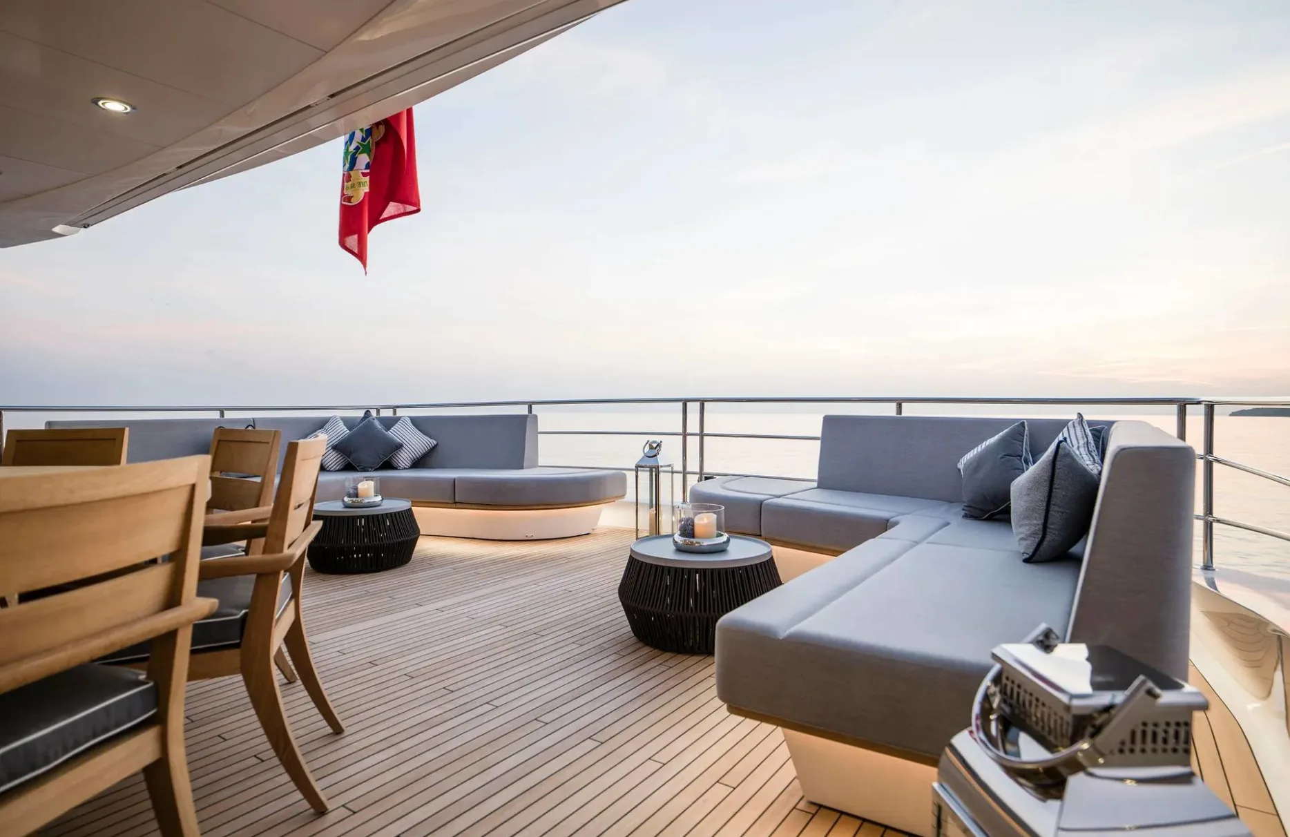Embark on an unforgettable journey aboard the Berco Voyager, a 40-meter marvel of British design by Sunseeker. As she glides through the azure waters of the Mediterranean, guests are invited to experience a world where elegance meets adventure. With a robust cruising speed of 14 knots and the ability to reach up to 25 knots, Berco Voyager promises both comfort and exhilarating speed. Her impressive range of 1,500 nautical miles opens up a realm of possibilities for exploration and discovery, whether it’s the hidden coves of the Mediterranean or the bustling harbors of Europe. Onboard, the atmosphere is warm and inviting, the perfect setting for gatherings of friends and family. Every moment is an opportunity to create memories, whether lounging on deck, enjoying alfresco dining, or simply savoring the gentle sea breeze.