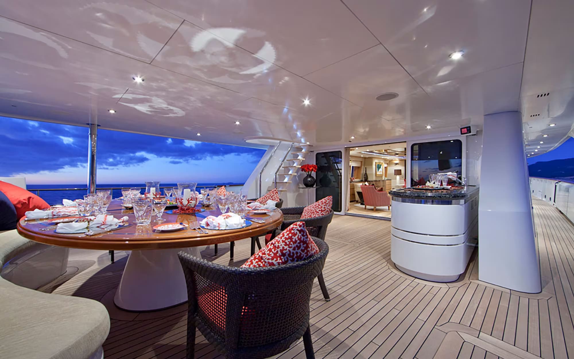 Life aboard the Big Change II is a tapestry of serene moments and lively gatherings, each enhanced by the thoughtful array of amenities. Begin your day with a refreshing dip in the deck jacuzzi, where panoramic views unfurl before you. As the sun climbs, retreat to the cool embrace of air-conditioned interiors, where elegant spaces invite relaxation and conversation. With Wi-Fi connectivity and video on-demand, entertainment is at your fingertips, while an iPod docking system ensures your personal soundtrack accompanies every moment. Evenings are a time for intimate dinners beneath the stars, perhaps followed by a movie with satellite TV offering a window to the world from the comfort of your floating retreat.