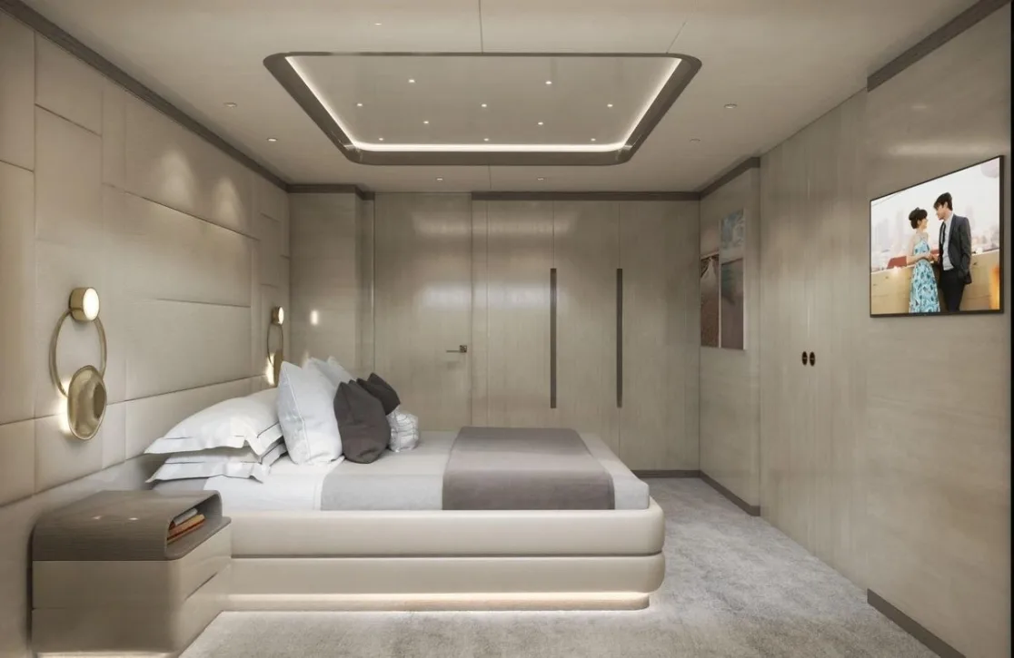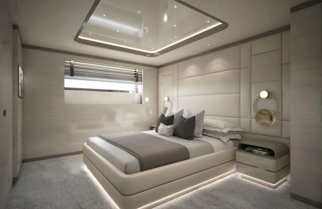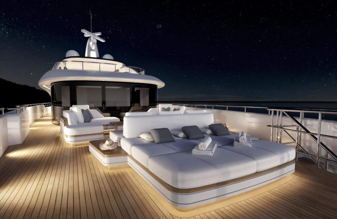 On board ‘Birubi’, every moment is designed to indulge your senses. Begin your day with a revitalizing session in the fully-equipped gym, followed by a soothing retreat in the sauna. The deck jacuzzi invites you to unwind as you gaze out at the horizon, while the beach club seamlessly extends your living space to the water’s edge. With at-anchor stabilizers ensuring smooth sailing, guests can enjoy tranquil evenings beneath the stars, where underwater lights cast a magical glow across the sea. Whether it’s an afternoon lounging on the sun deck or an evening gathering at the elegant exterior bar, ‘Birubi’ promises a sanctuary of relaxation and delight.