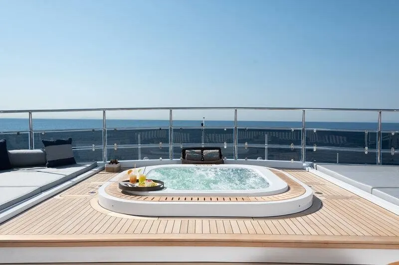 On Boji, your days unfold amidst a backdrop of thoughtfully curated spaces where relaxation and entertainment converge. Feel the soothing caress of a Mediterranean breeze as you unwind in the deck jacuzzi, or savor sunset cocktails at the exterior bar. The yacht’s foredeck invites leisurely afternoons with its elegant seating and table, while the sun deck beckons sun worshipers with plush sunpads. Whether connecting with loved ones or sharing moments with new friends, the seamless Wi-Fi ensures you stay in touch with the world, while state-of-the-art air conditioning offers comfort in any climate.